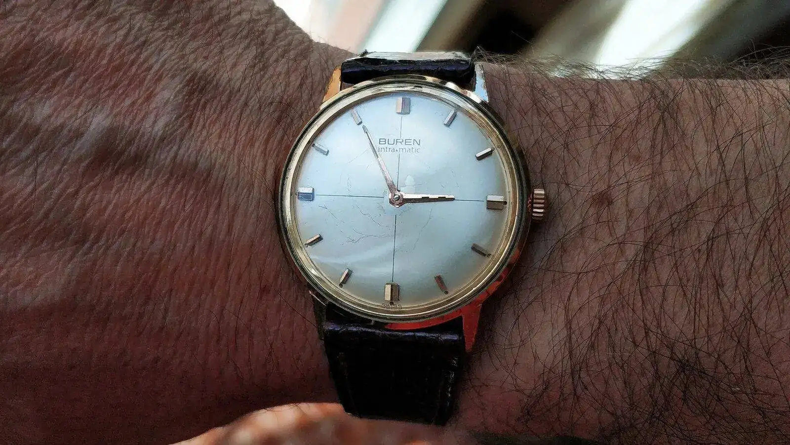 El mío tiene la esfera achicada por no tener una del tamaño que requiere la caja, totalmente repintada a mi manera, o sea, con la apariencia que yo le dije, y los índices cambiados. Ahora le he tenido que poner un armis porque ya hoy aprieta el Lorenzo.