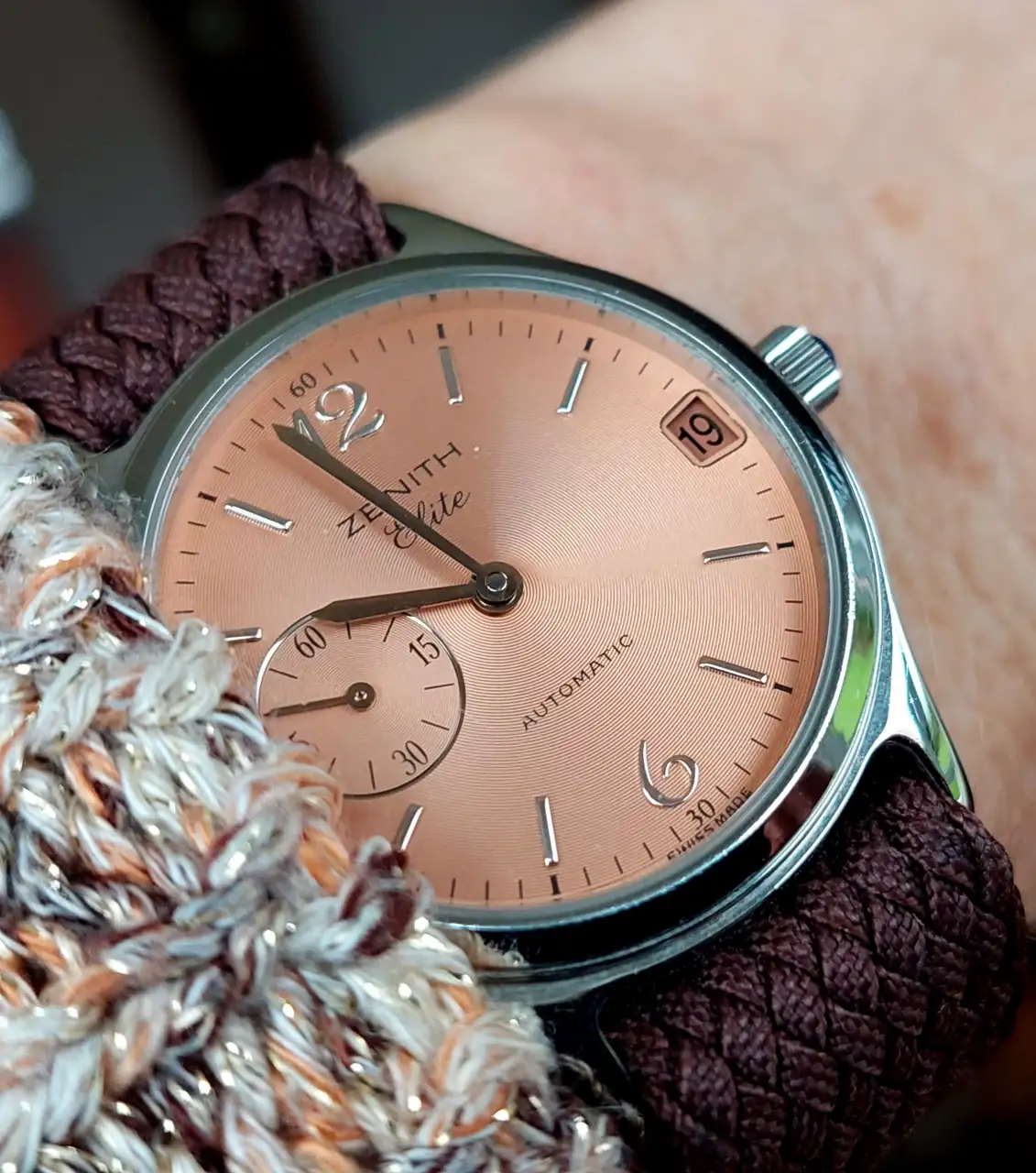 Le queda fenomenal¡No, no es un brazalete original de este modelo! Es un brazalete de antiguo stock, genérico, pero me gusta el toque que le da al reloj. Me lo regaló un estimado compañero de este rincón, además.