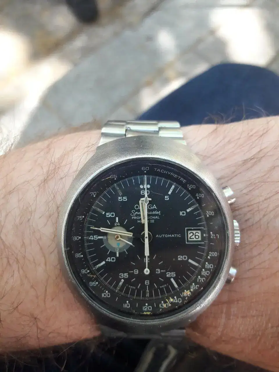 Buenas tardes distinguida concurrencia vintagera. Hoy con mi batallado y ajado por el tiempo Omega Marck 3, la maquina esta impoluta y funciona como un longines.