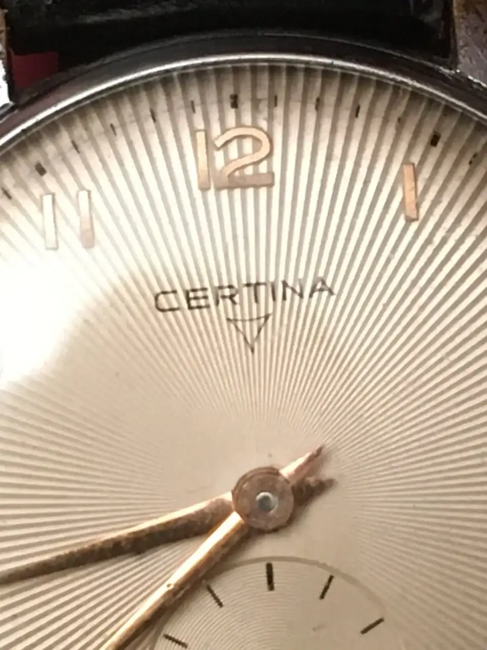 Gracias Miguel por tu atención. He hecho otra foto lo mas ampliada que puedo y si que pudiera ser la R y la I de Cauny Prima o la R y la T de certina, o ...Pues entre todos deberíamos averiguar esa esfera que marca es , CERTiNA descartado y