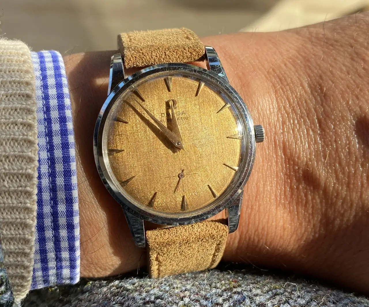 Pues fíjate, yo tuve el negro en 40 mm y este me lo miraba de reojo, por lo del dorado. Pero ha sido un acierto, y en 36 mm...Siempre me ha gustado ese reloj.