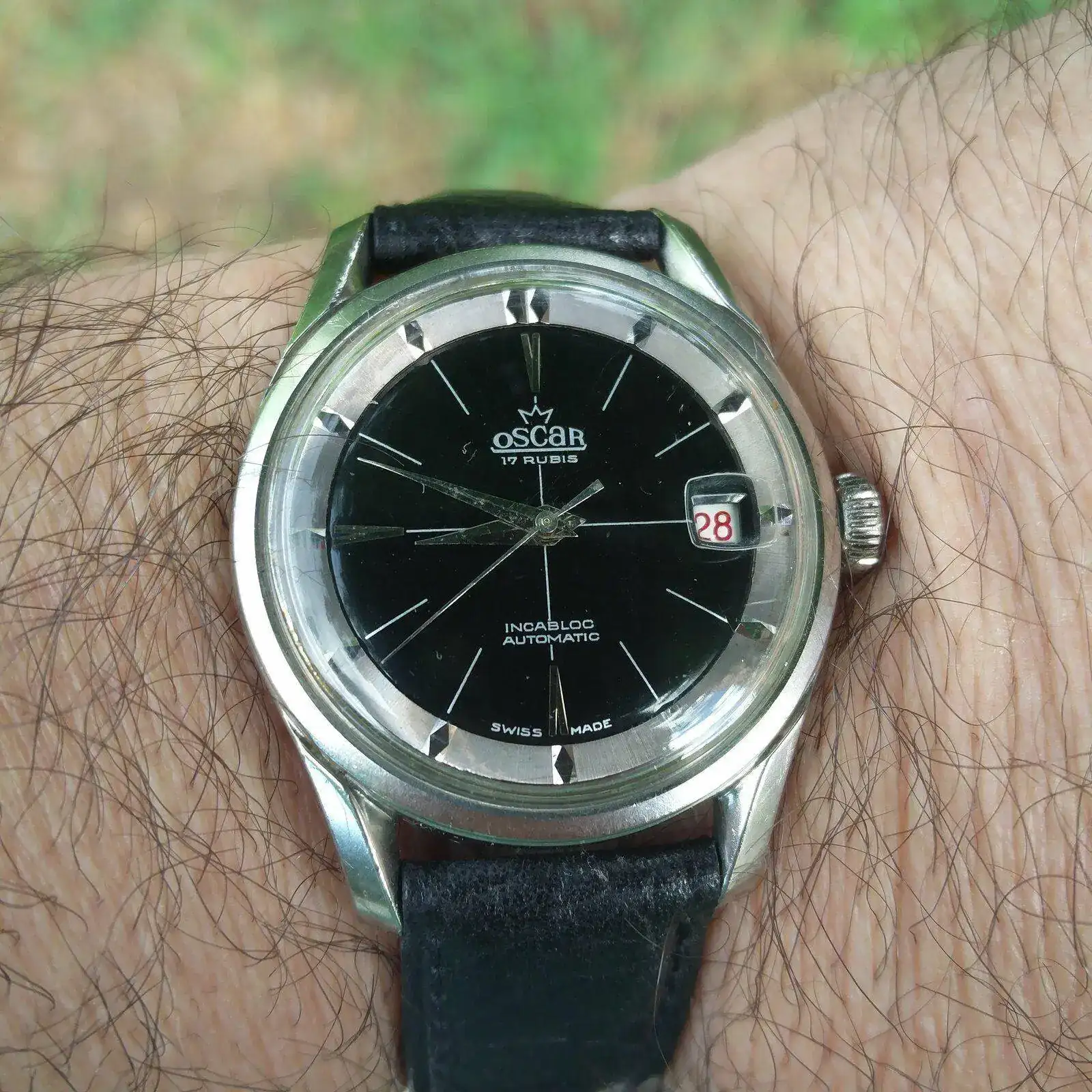 Como siempre, es un placer para los ojos pasarse por aquí. Yo hoy os acompaño con un reloj que mencioné en un hilo abierto hace unas semanas sobre el Universal Genéve Polerouter que he conseguido gracias Daniel "Boktok". El Polerouter pasó por unas cuantas manos que lo deshecharon antes de llegar hasta Daniel que me lo enseñó mí, en ese momento, este Oscar con calibre ETA 2452 era el reloj que tenía en mis manos y cómo el Polerouter ha seguido su camino hasta llegar de nuevo a mí la semana pasada. Los 2 del mismo vendedor y al mismo precio...