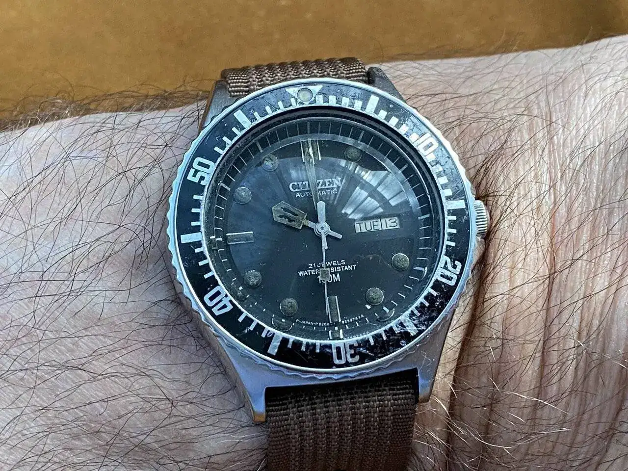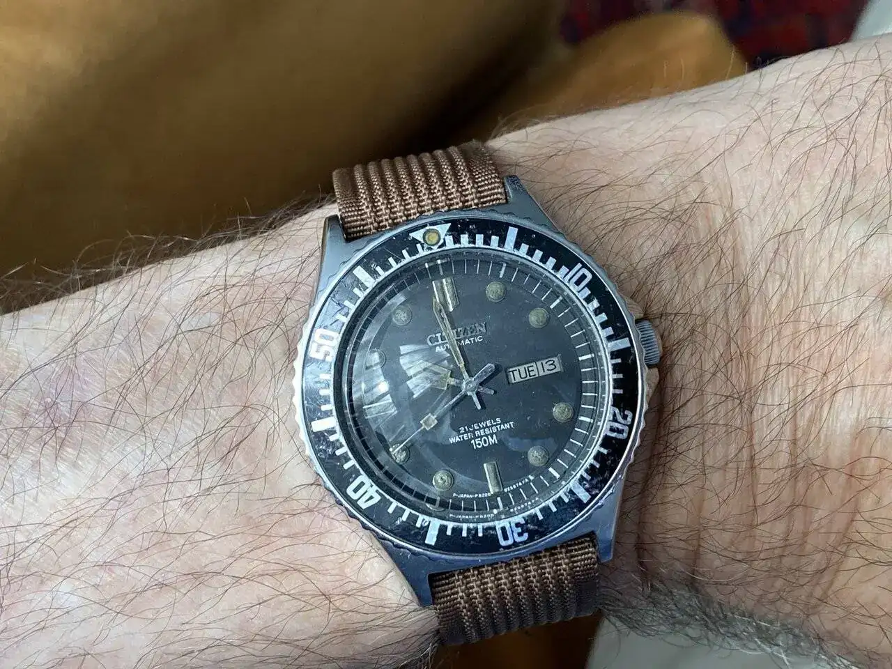 Hoy todas las piedras para mí por este cigala que, después de varios años rodando encima de la mesa, precisamente por su color, entre el sábado y ayer logré revivir tras muchas peripecias y alguna ayuda externa. Monta una "Zodiac" sin numerar con base en AS 1687/88 modificada de manual a automática por aquel consorcio de empresas que nombra Ranfft. Ha recibido el trasplante del áncora de un AS 2066 modificando ligeramente la altura de los rubís de platina y puente ya que es algo mayor de largo de tija. Todo gracias a mi Ángel de la guarda y a la reina mora.