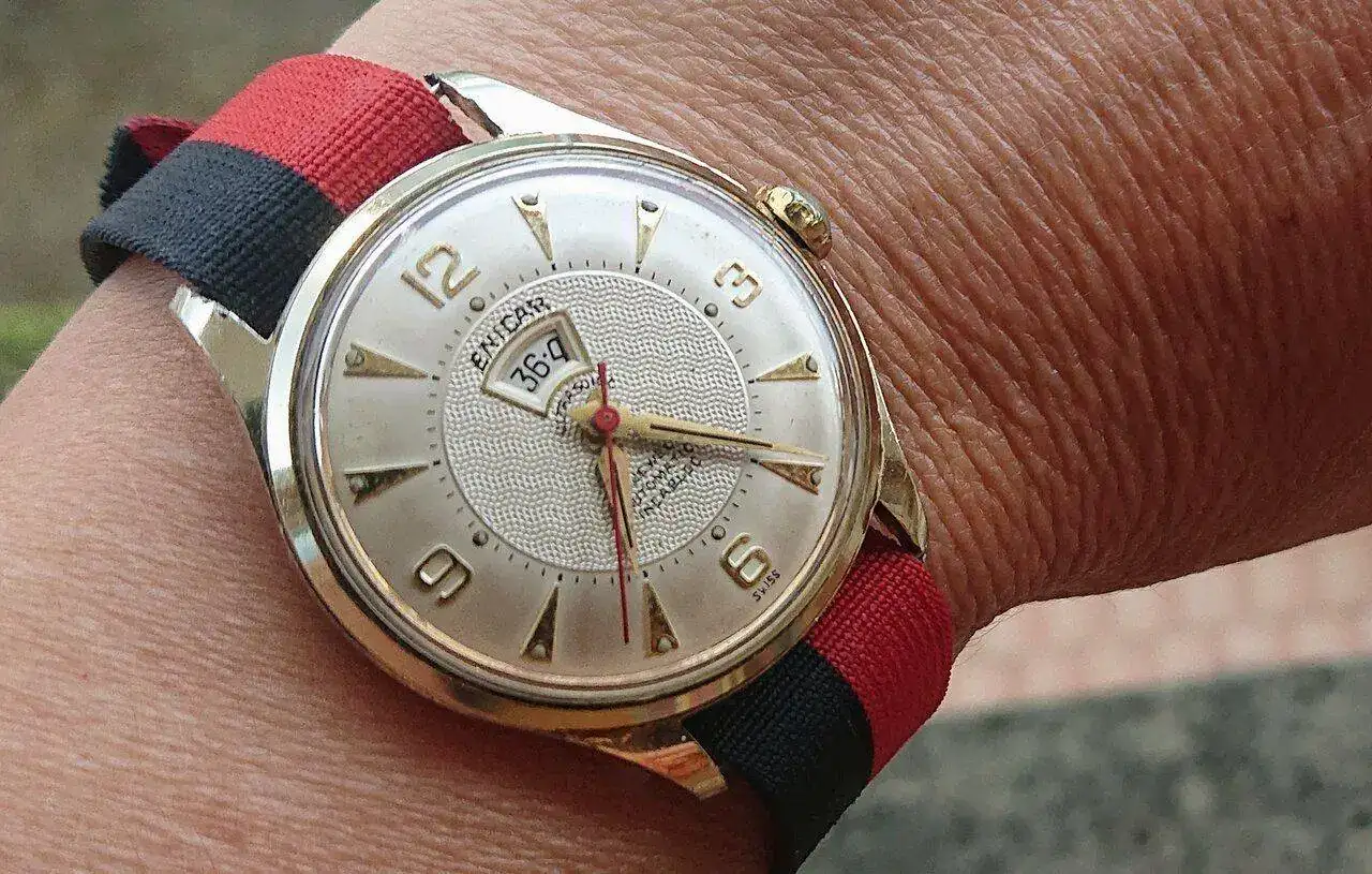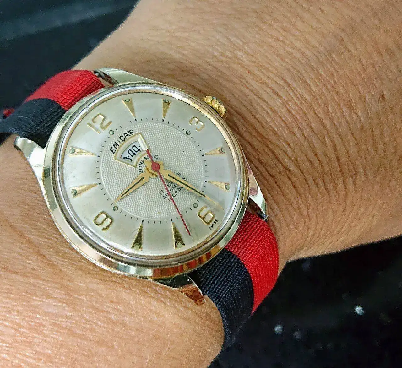 Buenoooo, valeeeee, lo reconozco: no es un dato vital y me gusta especialmente porque estéticamente me encanta cómo se solía resolver en los relojes vintage (en los actuales no siempre lo hacen con tanto acierto, para mi gusto) 🤩 Una de ellas es la ventanita que tiene mi Enicar, que esta mañana estaba en rojito al ponérmelo y ahora ya indica que está bastante cargadito, aunque aún le falta para llegar al tope de sus 44 horas de reserva; si ahora me lo quito y lo dejo en una mesita, se supone que ése es el tiempo, entre 36 y 40 horas, que continuará andando sin que lo esté usando...