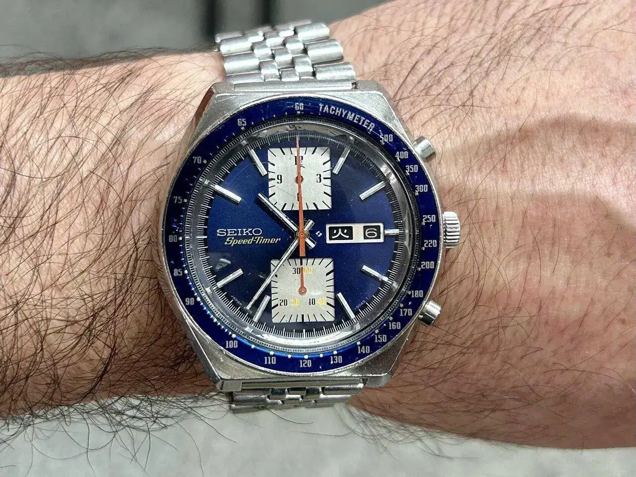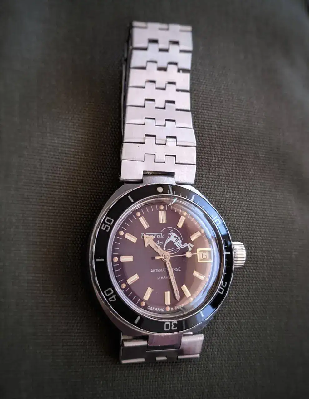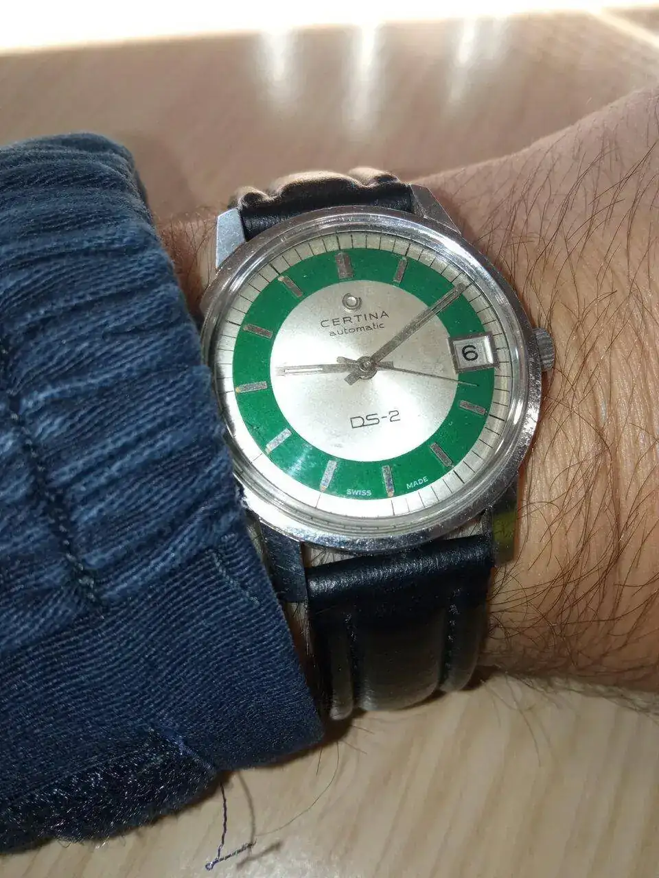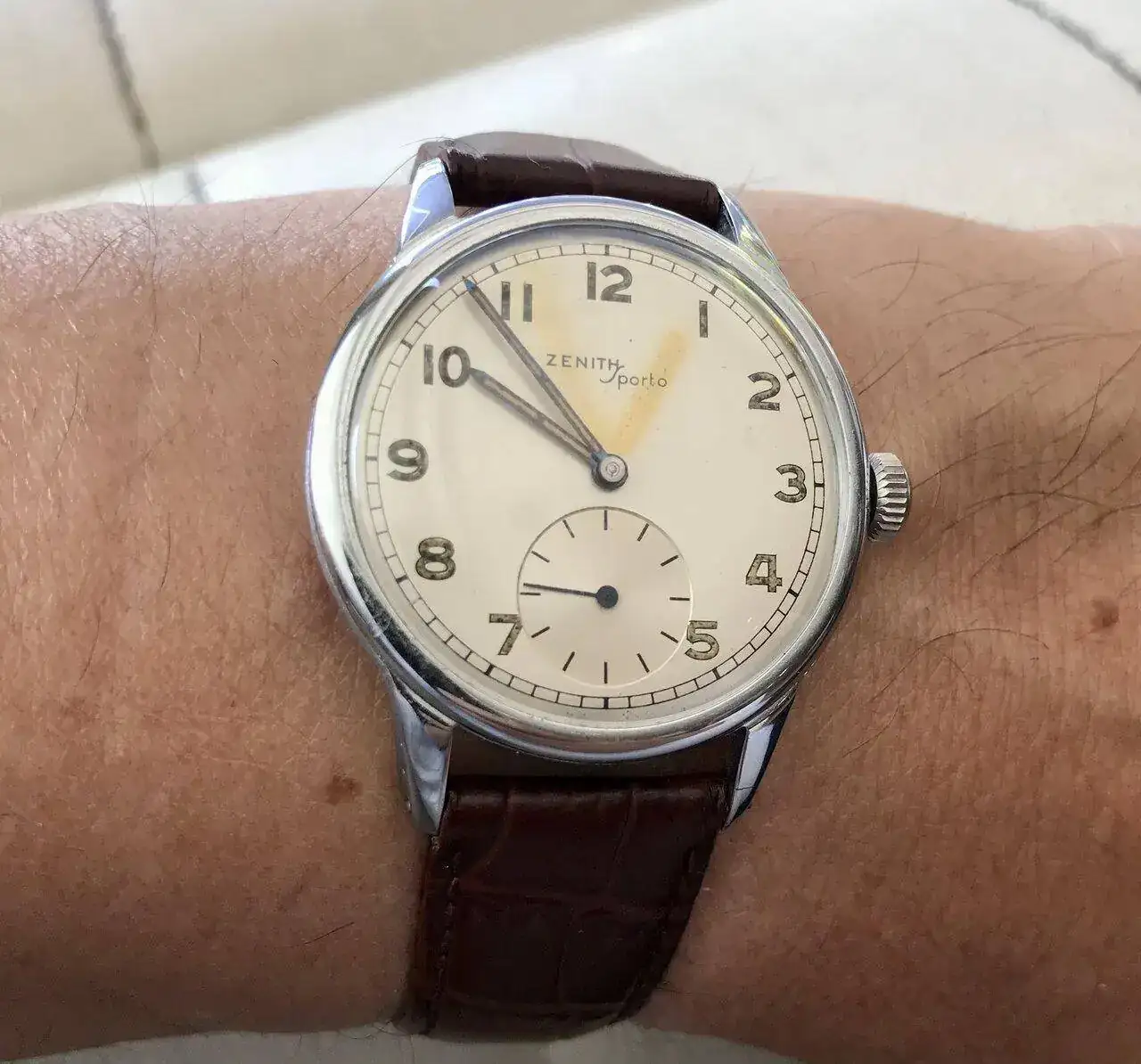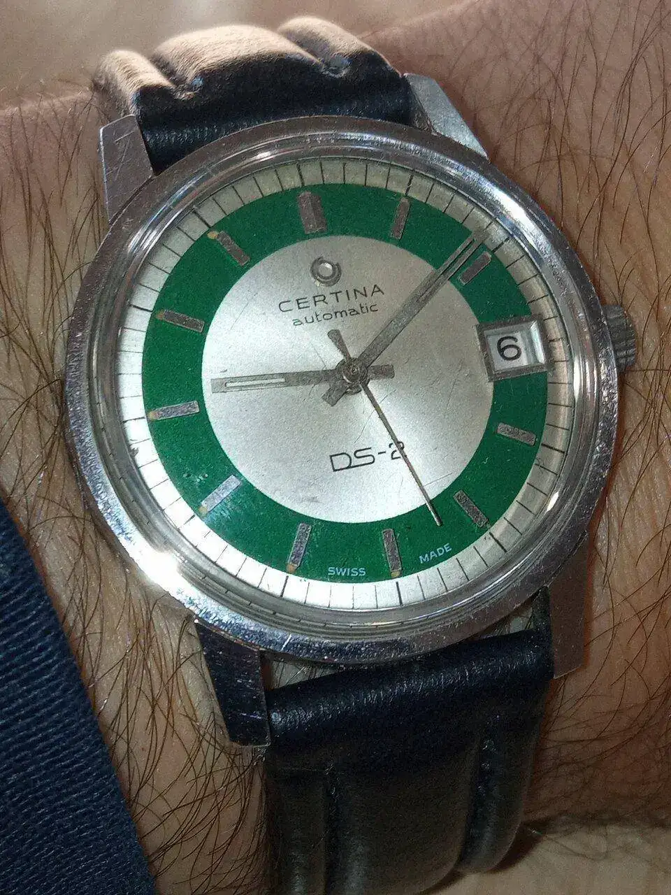 Hoy someto a juicio de los expertos este 565 que terminé de re-montar ayer, con esfera restaurada, agujas que me llegaron juntas en una máquina pero que me parecen "desparejadas" y no sé si hubo una combinación así. La foto la he tenido que hacer en escorzo buscando luz, por ello adjunto otra directamente al prota