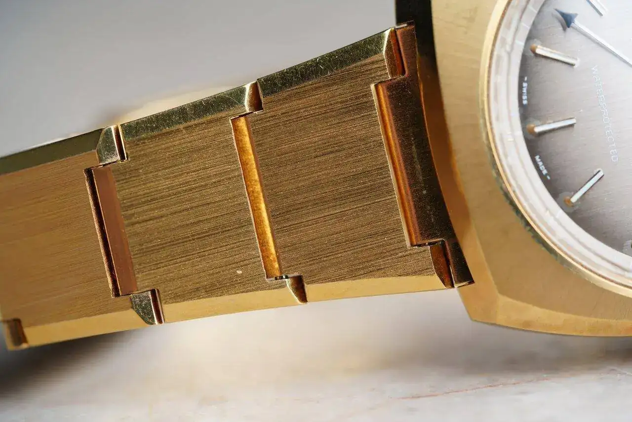 No sólo Patek y Rolex, también Zenith, UG, Omega y alguna otra marca en esa época tuvieron problemas con las esferas azules y el tritio que dieron en unos estropicios no muy bonitos, al menos eso opino yo. Yo tengo un Omega Geneve comprado NOS de joyería con ese problema que, casualidades de la vida, monta un brazalete integrado prácticamente idéntico al del Vulcain de tu foto. Aunque suena difícil, los veo tan iguales que lo mismo son compatibles; no el de mío, claro, que es tamaño lady, pero es un modelo que también lo hubo de caballero.