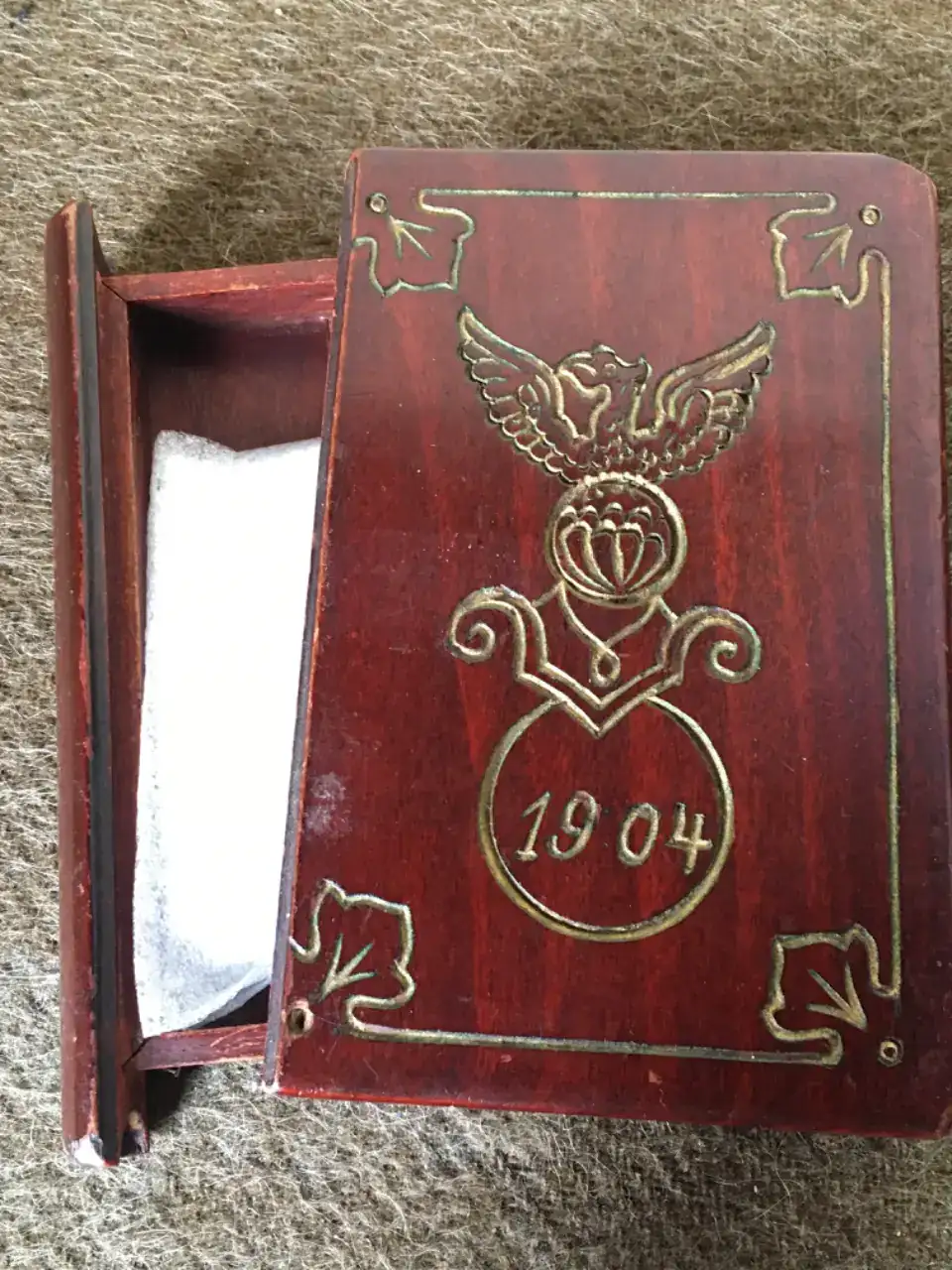 La caja parece que tiene aires nazis, pero resulta que es de antes.