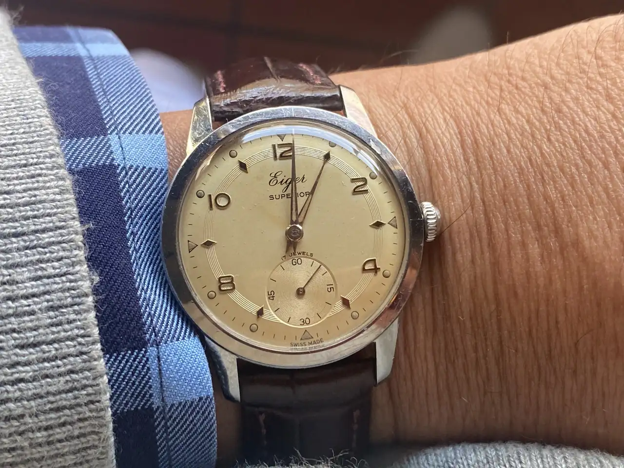 Se ve estupendo con esa correa. Si no te llega la bund puedes estar tranquilo. Saludos!Gracias Casiná, por la apertura con tu Omega número 18.526, cien Omegas arriba o abajo.