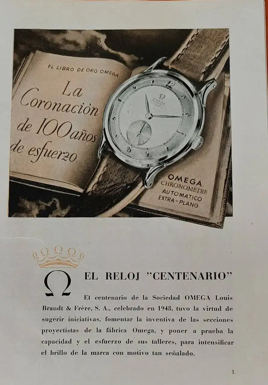 El Centenario sale en 1948 fecha del centenario Omega, los primeros con n° de serie 1068xxxx.