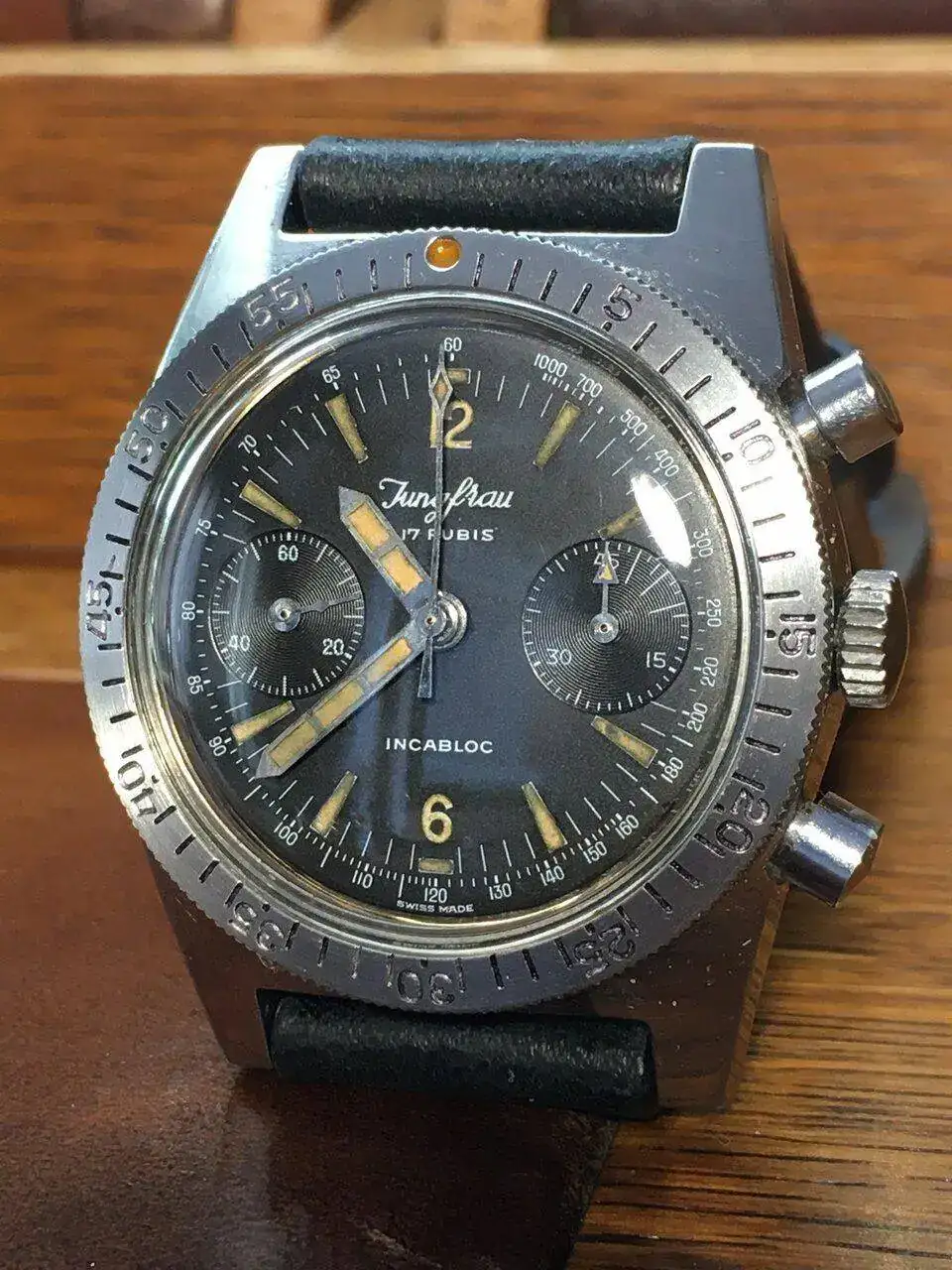 Pues que me acabo de dar cuenta que ayer antes de acostarme acicalé este Jungfraü para sacarlo hoy, después de sacar el Omega me lo encuentro encima de la mesa pidiendo salir, así que ahí va la foto de la Virgen.