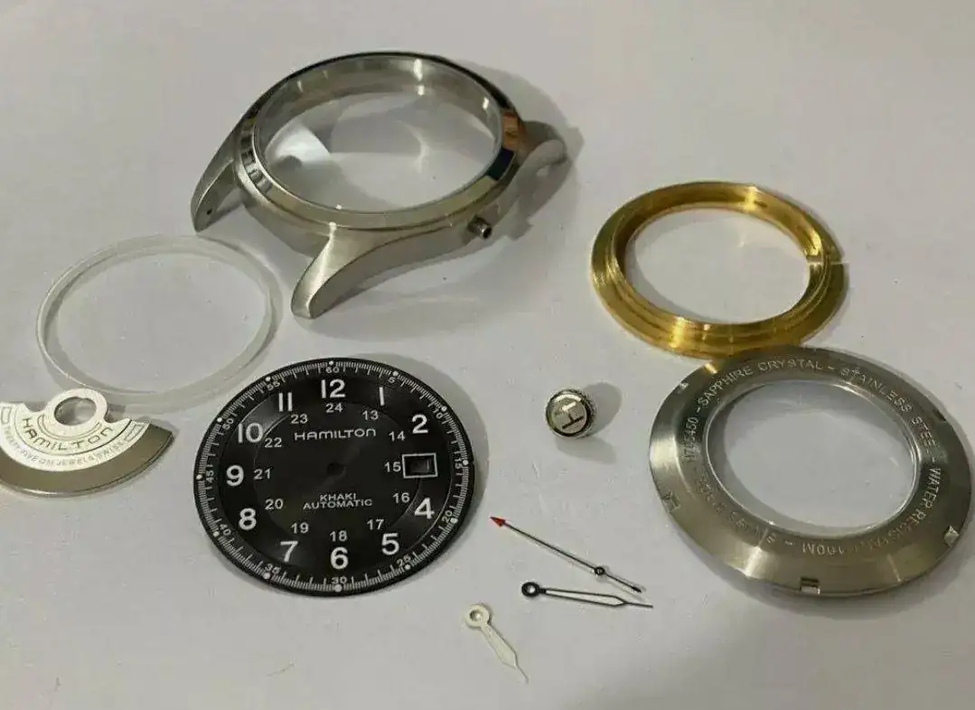 En la "bahia" buscas Hamilton case y entre otras cosas te puede aparecer lo que se ve en las fotos. Luego buscas una máquina que le acople ETA2824 o similar y a construirlo. Saludos.