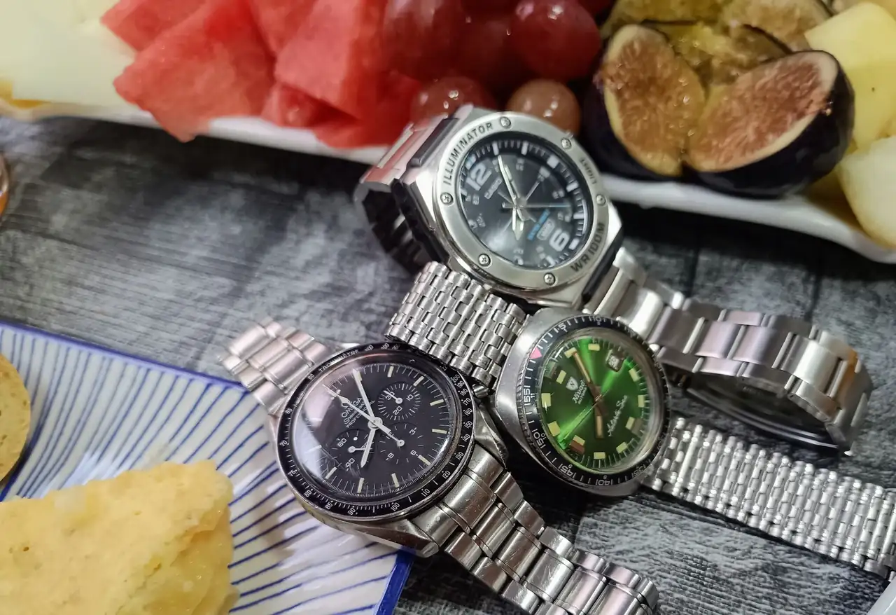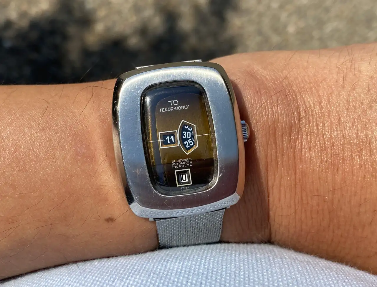 Hoy con un reloj absolutamente inútil. No adorna, no tiene la fecha en su sitio y leo la hora con dificultad, pero quién quiere que un reloj sea útil. Además es de los pocos que cuando lo llevo la gente me dice ¿qué demonios llevas ahí? Yo creo que se piensan que es un smartwatch o algo así.