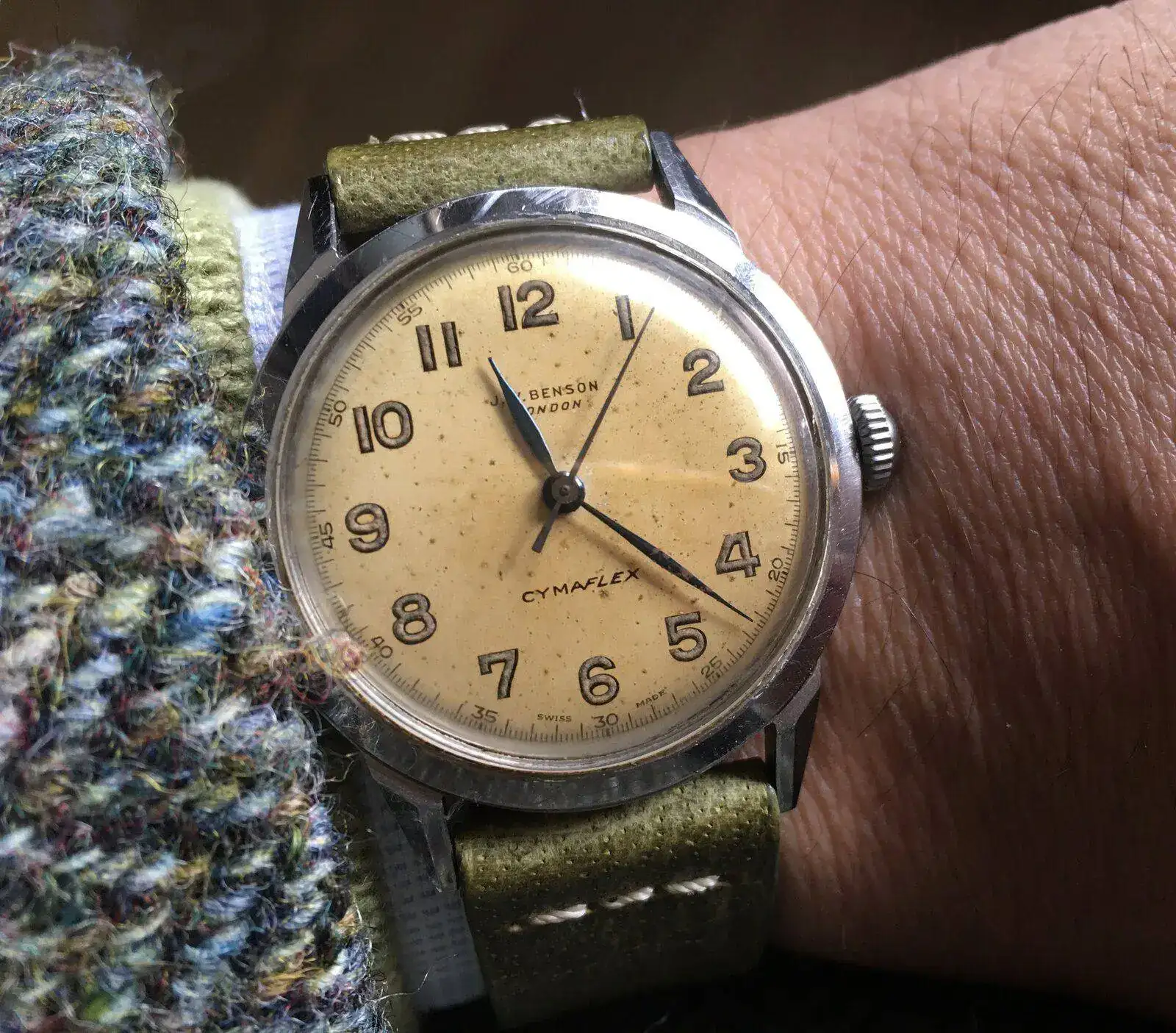 Disculpa una pregunta, compañero.Qureridos colegas vintageros, emborrachado por vuestros halagos de ayer y pretendiendo una elegancia impropia en mi, hoy me viste un pequeñín de 34mm y 56 años (como un servidor) y jamás restaurado que muestra un precioso dial "linen", para revisitar la vida del gran Stirling Moss, que a lo largo de toda su vida llevó diversos relojes pero siempre con el mismo brazalete que lleva mi Longines, según puede apreciarse en la segunda foto, y al que los apasionados del motor denominamos "brazalete Moss":