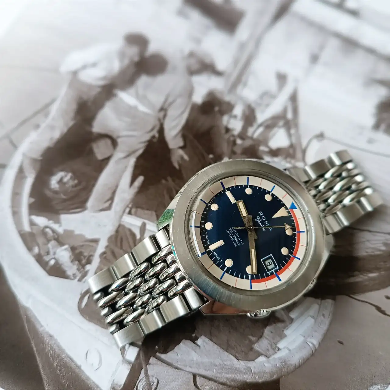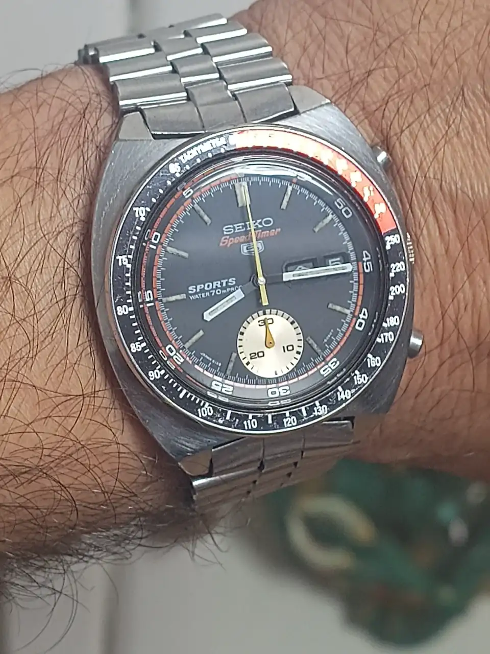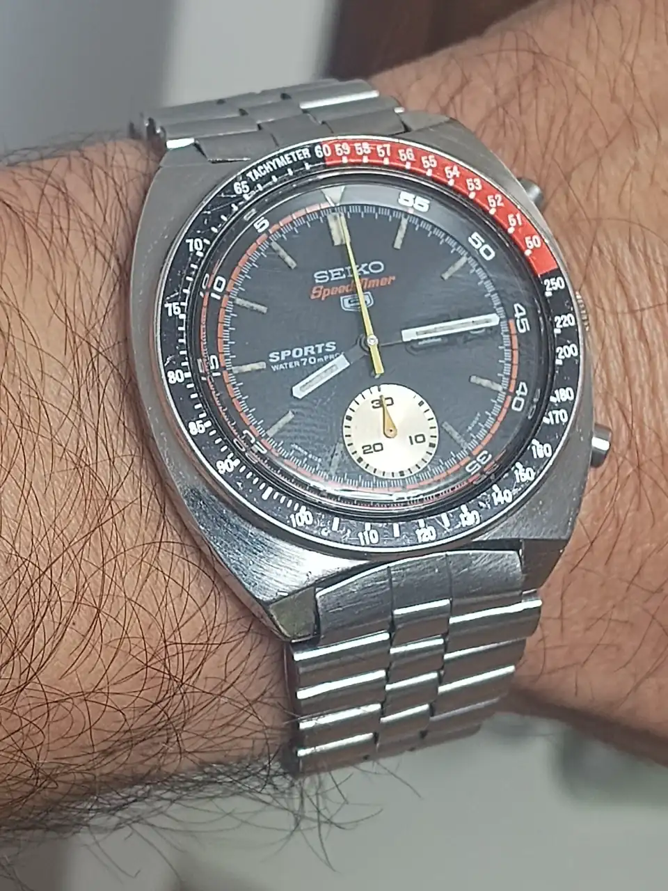 Una unidad de Seiko 6139-6002 poco común, con su brazalete stelux y en acabado resist de 1971.