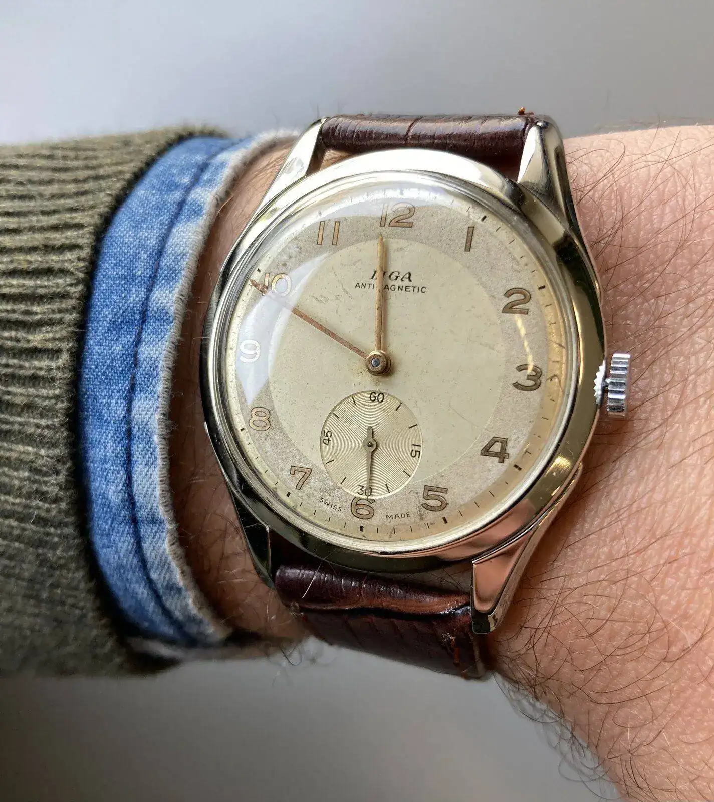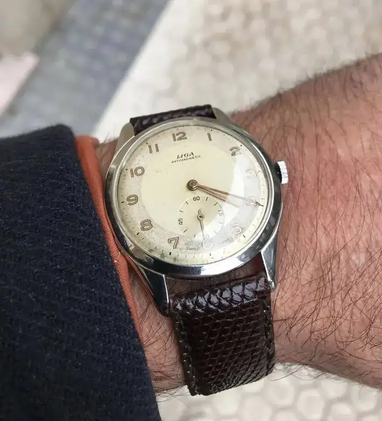 Está tal cual me lo dio mi padre, solo le puse una correa nueva. Al dármelo me contó que fue uno de los primeros automáticos que se vieron por España. Ni idea, porque que yo sepa en los '40 y '50 ya se producían calibres automáticos en serie.