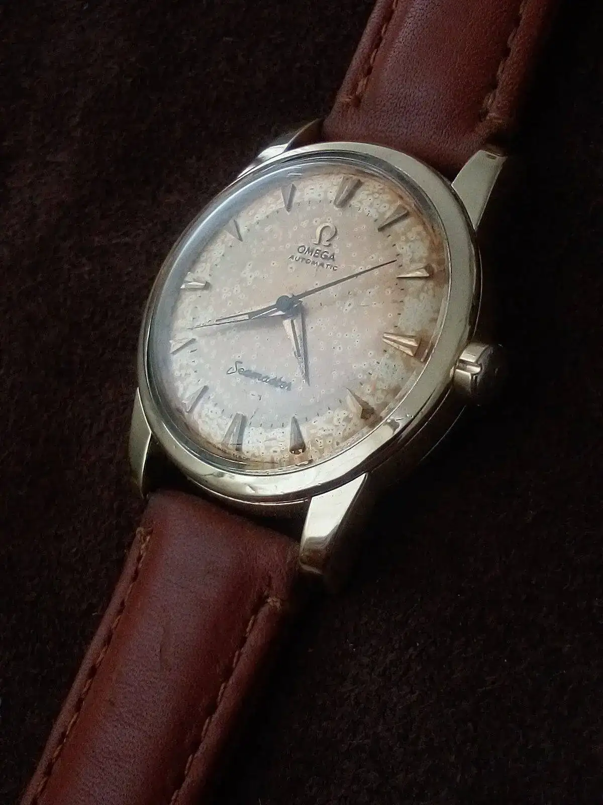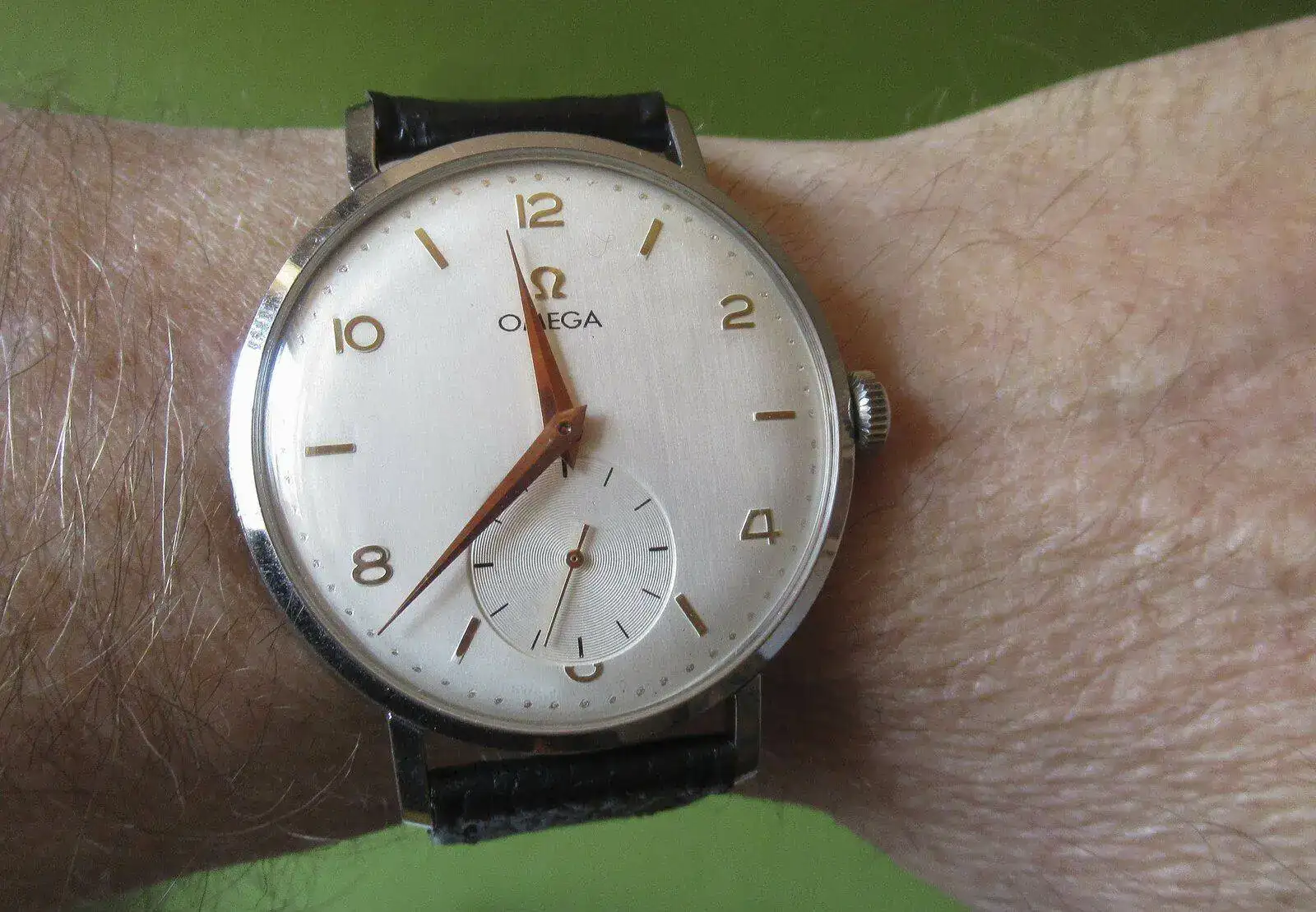 Hoy me pongo para muestra un Omega grande, grande; es un formato muy buscado porque es la única caja que hizo Omega para los 30mm, ella sola mide 40 mm. Pero me lo pongo sobre todo para que vea el compa Neken lo que pasa cuando se restaura una esfera. Yo tuve que hacerlo porque como estaba la vieja no me apetece mirarlo y así, ahora, si lo miro; pero me gustaría venderlo y, como está restaurada su esfera, tendré que esperarme a encontrar una original porque hasta entonces no habrá comprador. Muy bonito, si, pero sin valor