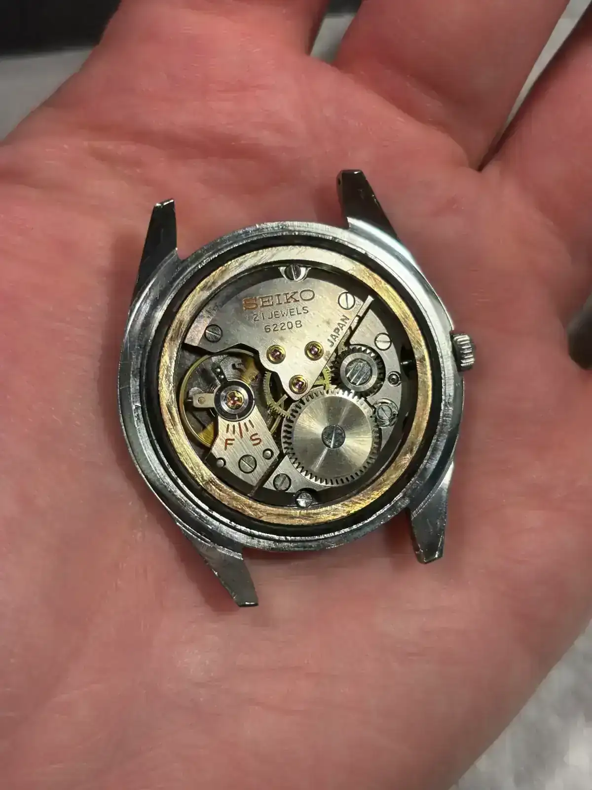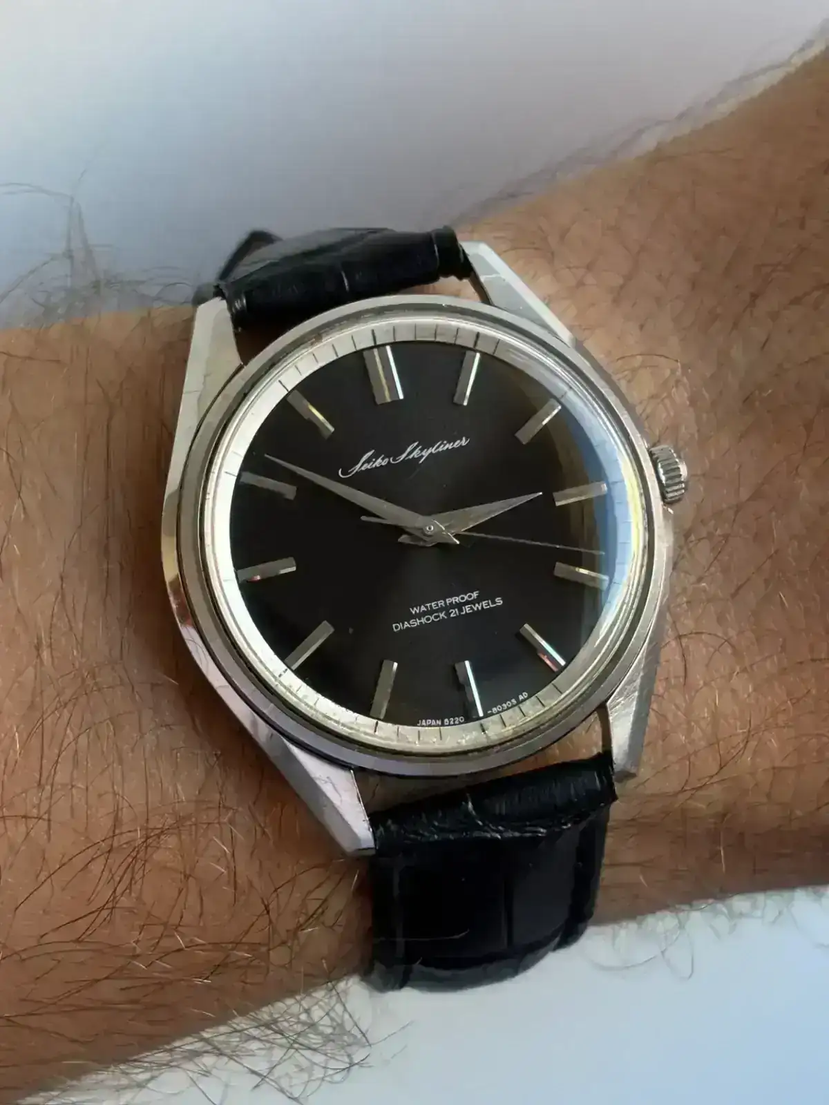 @julius1022 @javier ochoa @Aduran me alegro de que os guste compas 😬. Pensábamos que mi colega se toparía con más relojes durante sus andanzas, pero según me dijo, todo lo que se ve a simple vista, está caro. Relojes muy chulos, en buen estado, pero ninguna ganga. Yo le dije que me trajera algo si entraba en un presupuesto ajustado. Si tenía un poco de trabajo de aseo, sin problema, es lo que me gusta. Al final topó con una tienda que vendía de todo. En una vitrina había varios relojes. Me mandó fotos, y este fue el elegido. Me encantan estos relojes de vestir japoneses, y le tenía ganas a un skyliner. Además es negro y sin calendario. Del 67 y con movimiento 6220, al parecer el modelo de transición entre el primer skyliner y el último, sólo producido durante un año. Y va como un tiro!! 😬