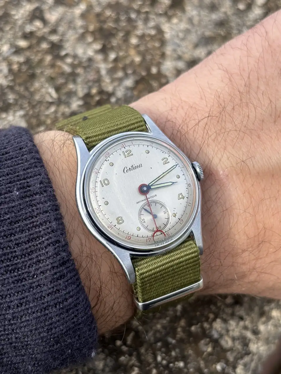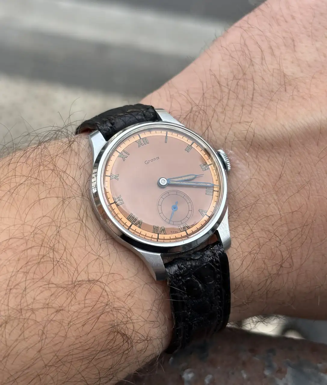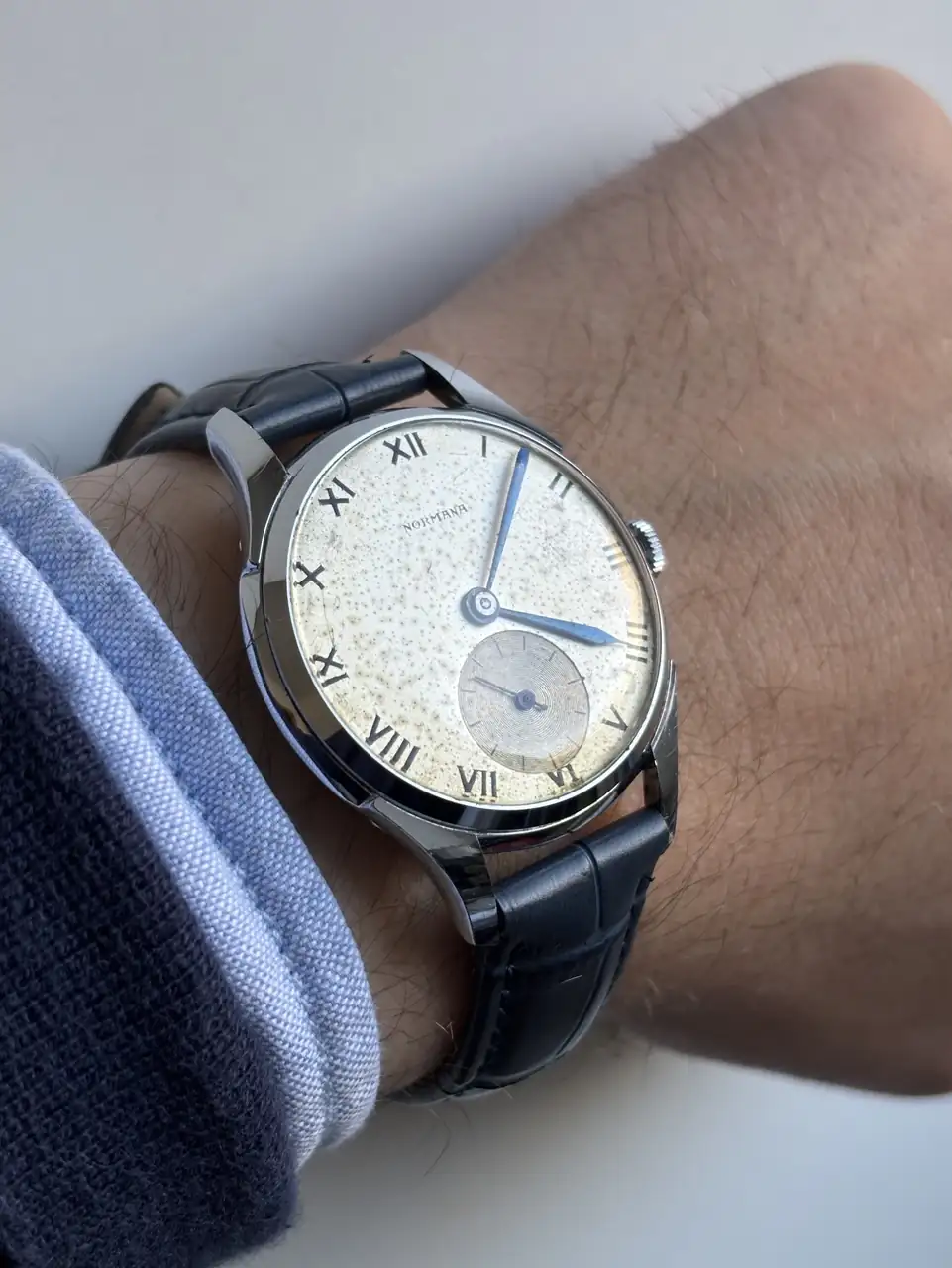 ¡Me alegro de que te gusten @pinon ! Tanto el pointer como el Grana son NOS (o lo fueron), por eso tienen las cajas tan bien. En cuanto al normana, pienso que en algún momento se la re-cromaron. Si se observa con detalle, se notan cosillas que me hacen pensar eso. Y más teniendo en cuenta el envejecimiento de la esfera...un abrazo compi.Menudo desfile, amigo!!. Y todos de gran belleza 😍, me sorprende el impoluto estado de las cajas del Normana, del Grana y del Certina, que maravilla!!