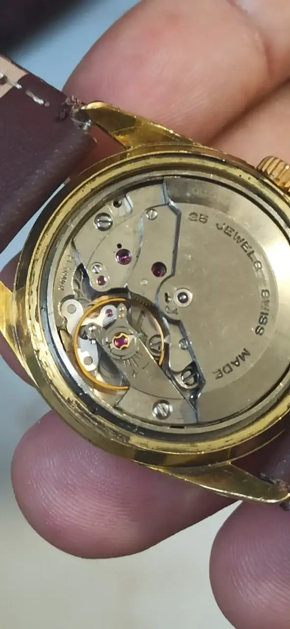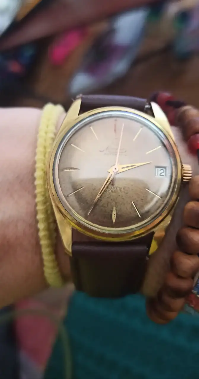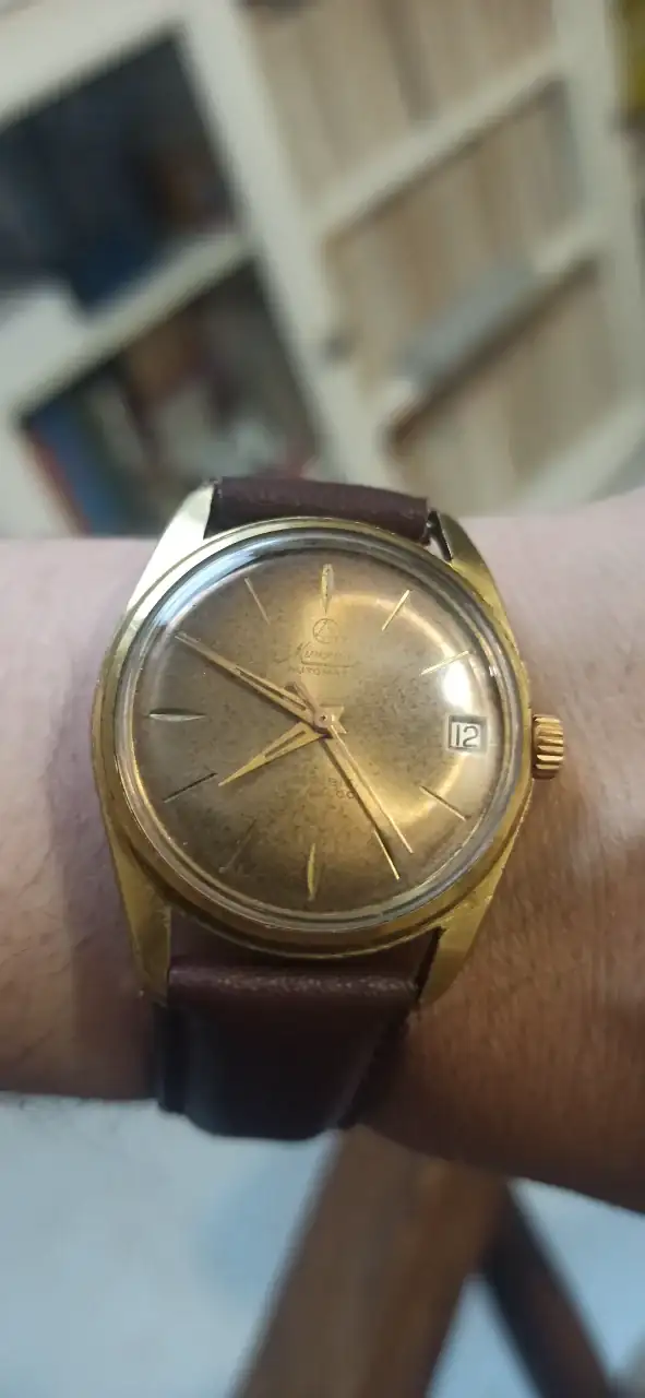 Me gusta ese Minerva, Susana, muy bonito y con una buena maquina. Lo del calendario, vaya usted a saber, pero lo de las agujas es muy sencillito, hay que ajustar la cuadratura del cañón de minutos, o la chaussé, que dicen los entendidos.Aquí pongo el que rescaté ayer. Las agujas están muy flojas y atrasa una barbaridad porque no se mueven, así como el calendario, que no cambia. Pide a gritos una puesta a punto, pero es bien resultón ( a mi gusto). Con un buen chapadin de 20 micras, además. Así que le llevaremos a un spa y le buscamos una correa. Pero aquí os lo enseño: