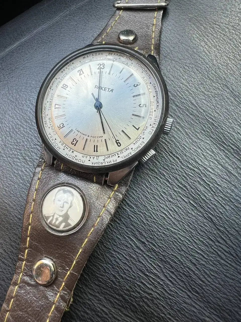 El reloj muy chulo (y práctico para saber la hora en VladibostokMuuuuy buenas! Recién salido del horno y primera incursión en el mundo relojero soviético. Raketa polar 24horas con su bund Yuri Gagarin y en estado excepcional… siempre es importante saber la hora de Camoa, Dakar, Carpatos… identificáis alguna ciudad más?😂. Gracias @KIKEMORGAN por tus estimables consejos