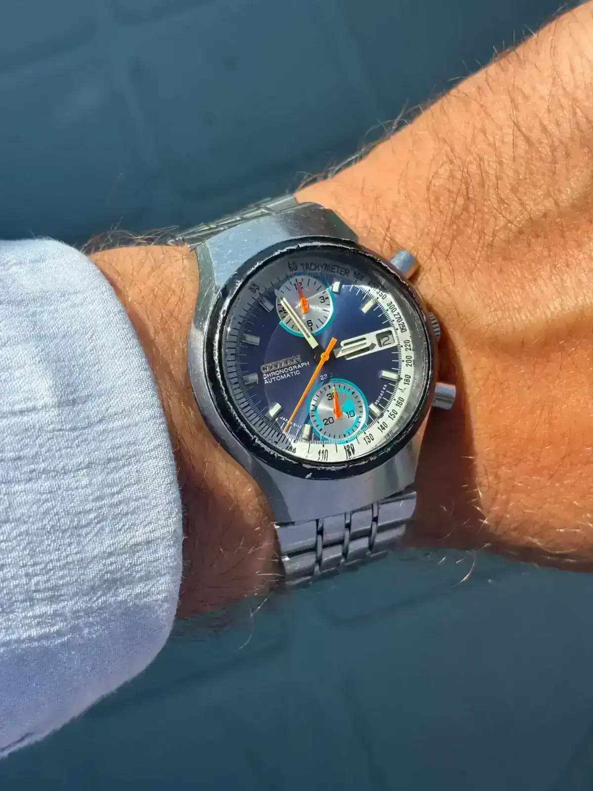 ¡Viva el color!Egun on vuelvo al Gagarin, con correa recuperada de un GP de hace 32 años.