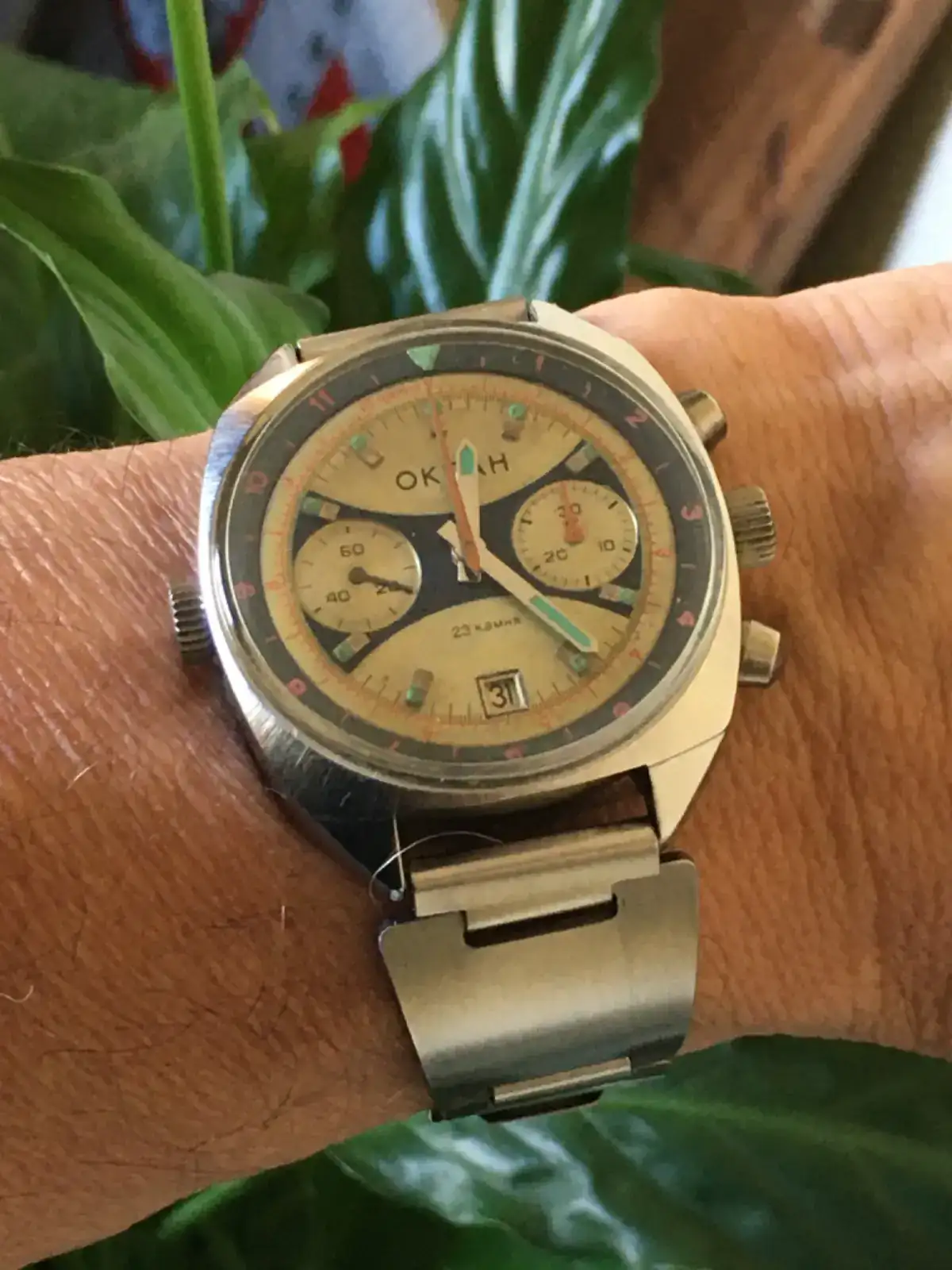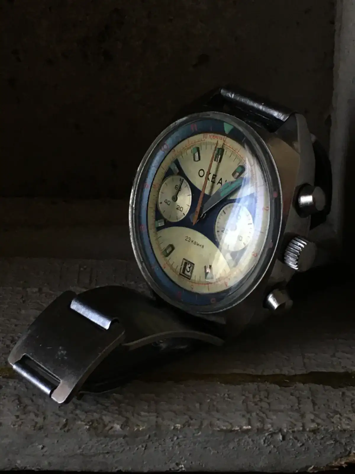 Pero en el resto de la ciudad hoy es día grande entre los grandes. Por ello, y siguiendo la costumbre de mi paisano Guti, me pongo el que me compró mi padre allá por 1962 y que me acompañó hasta 1978. En mi adolescencia y mi juventud le pasó de todo mientras me acompañaba, incluido golpetazo que se llevó por delante el plexi y la minutera; es por ello que estas no son sus originales. A veces he pensado en cambiarlas por las suyas pero luego me arrepiento y lo dejo como ha estado siempre. Y con la misma correa con que se guardó.