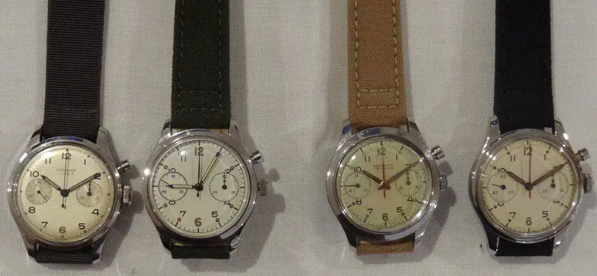 edito por que lo acabo de mirar : -Candino -Omega ( con Lemania 221) -Breitling y- Rodania son las cuatro marcas que recibieron encargos del ejercito canadiense para fabricar estos modelos