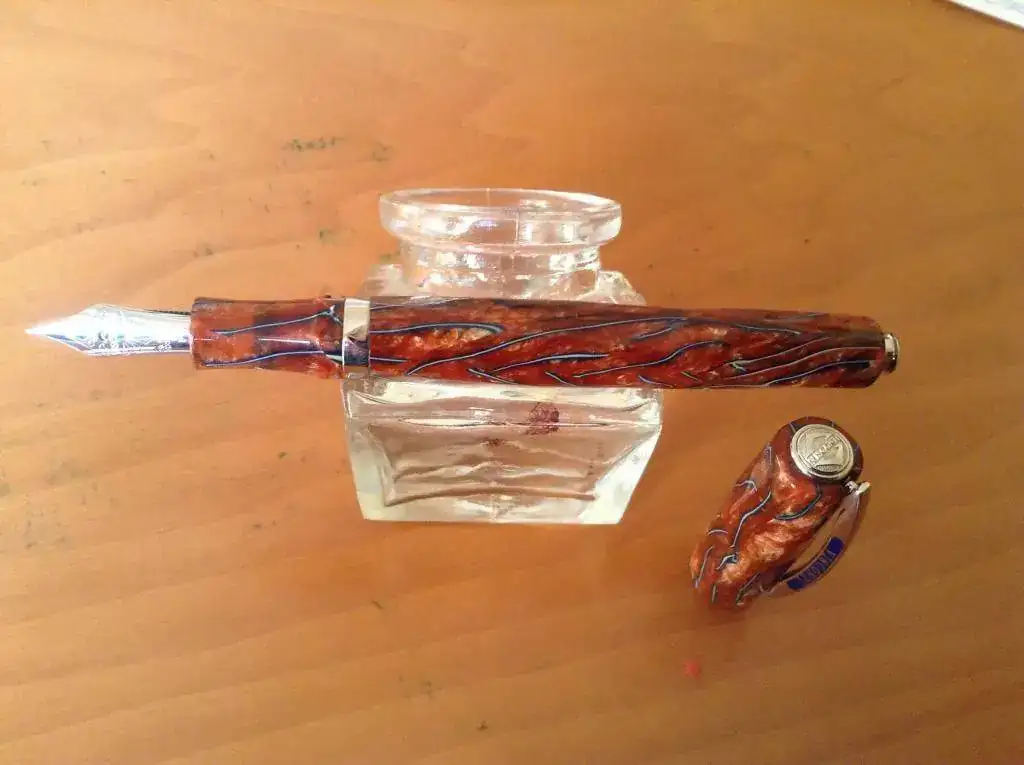 Pongo a la venta una de las plumas de celuloide más bonitas de Visconti, y difícil de encontrar: la Desert Falls es la "hermana menor" de la Desert Springs, pero tiene algunas ventajas respecto a aquella.