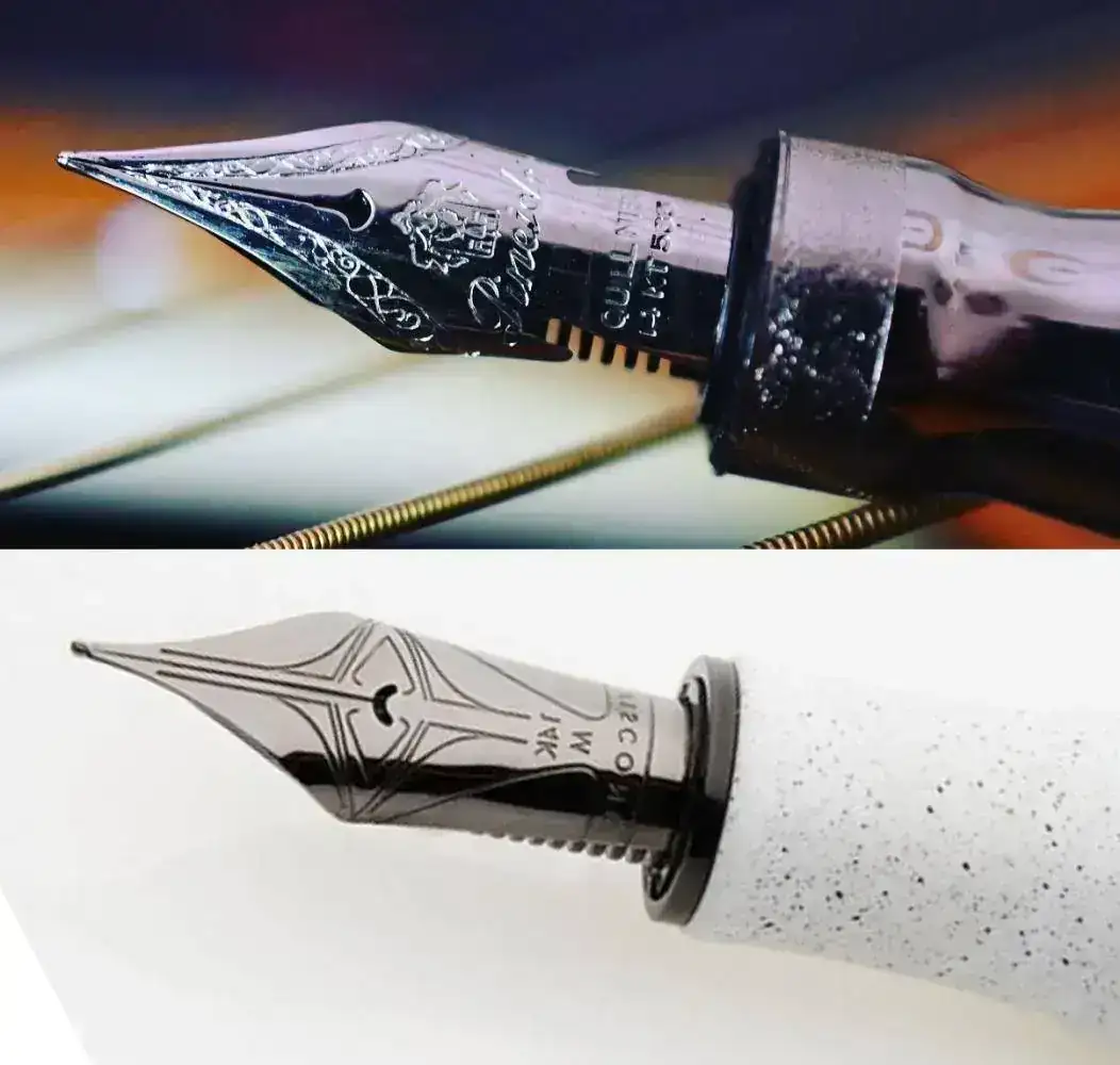Afirman que los plumines son de nuevo diseño y, sobre todo, fabricados por Visconti, en oro de 14 kt con acabados en metales de color.
