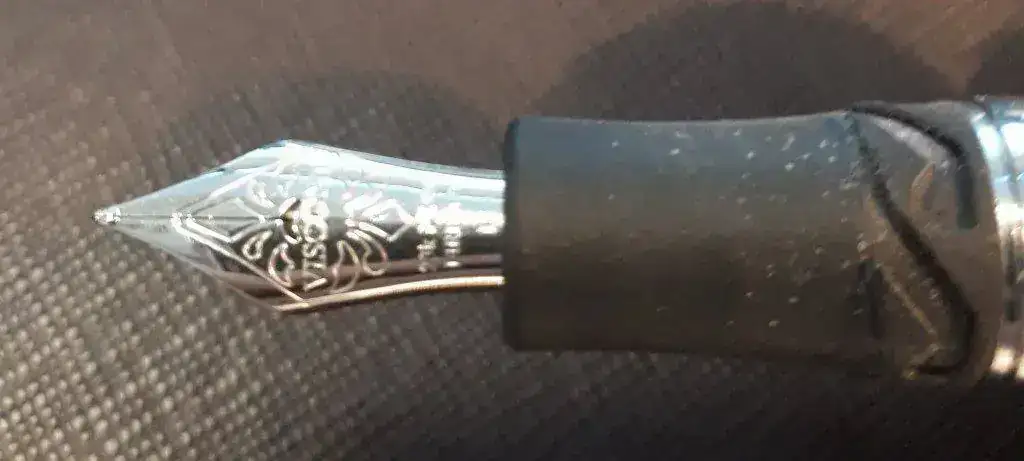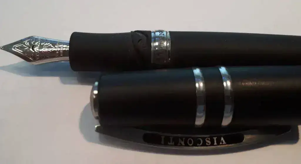 Pluma ya conocida, fabricada con lava volcánica y con Plumín de paladio 23k punto M. Carga mediante pistón.
