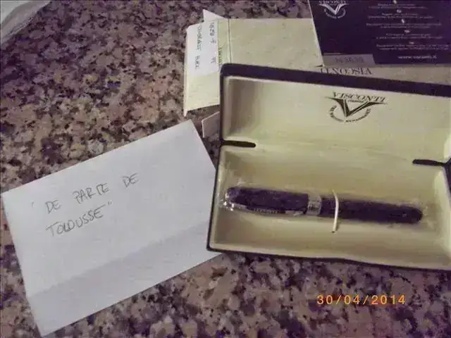 Dentro una caja de cartón y en ella un estuche de piel extraordinariamente suave que contenía esta delicia. Mi presbicia no me ha dejado enterarme completamente de que era lo que venía.