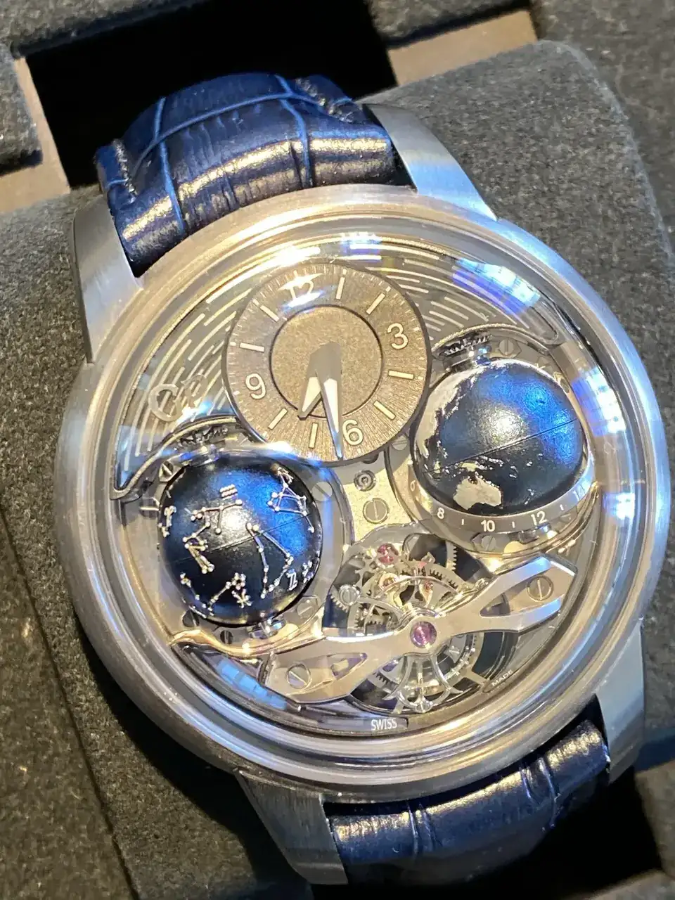 Los relojes que has mostrado son de aúpa y tente tieso. De los 5 primeros que muestras... uf, el Girard-Pérregaux -en cualquiera de sus versiones- siempre me ha chiflado. Y los demás son tremendos también, claro. Creo que (en caso de poder elegir uno para mí) me quedaría con él K. Voutilainen. Los relojes de este señor siempre han constituido un sueño (inalcanzable) para mí.