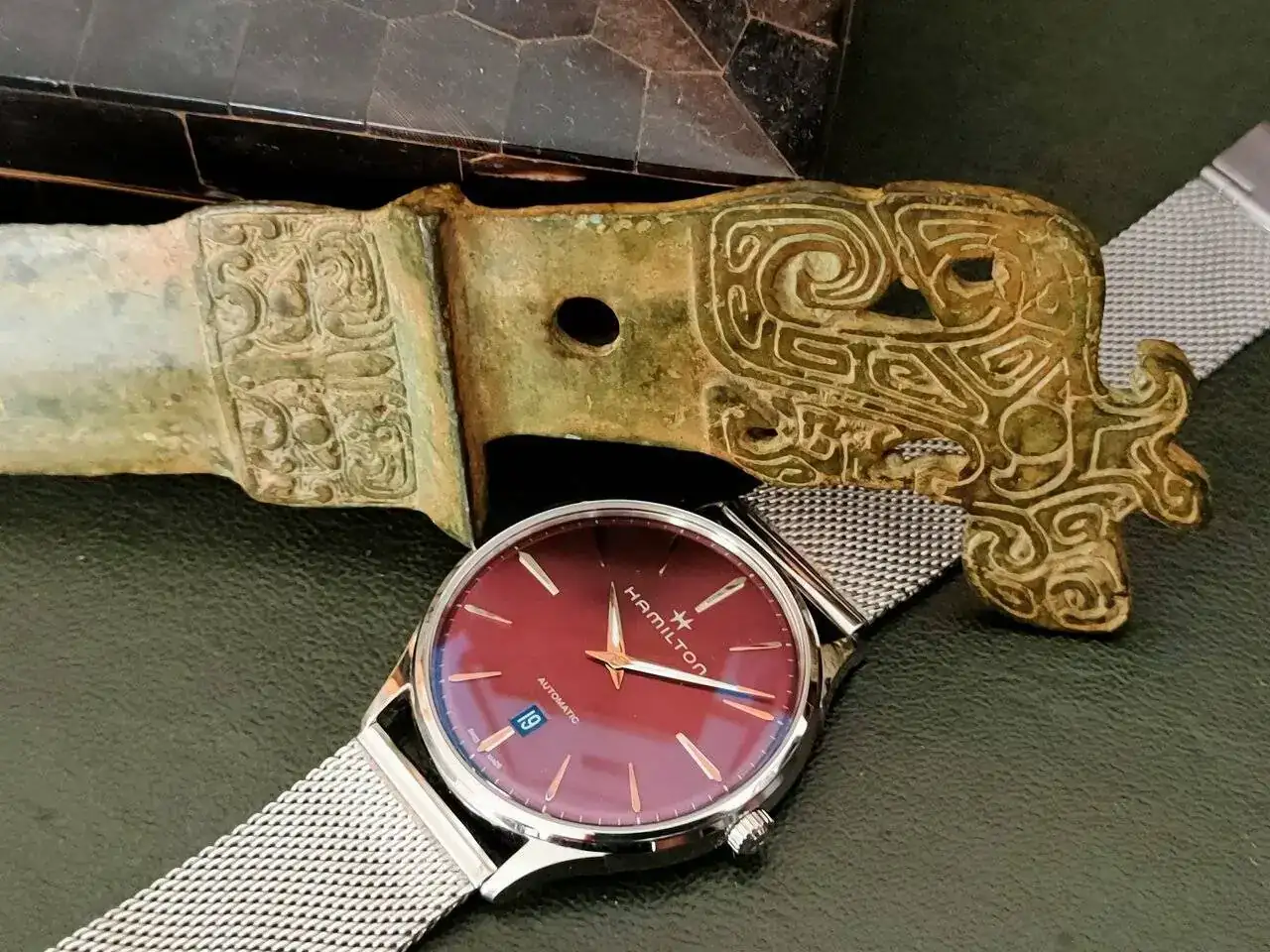 Después de algunas compras simples de Casio que dicen que no cuentan ja, volví a picar o pecar con otro reloj, pero si ya tienes todos los intramatic Doctor loco me decía, si ya tienes el mismo modelo de Jazzmaster en Burdeos, para que quieres este con esa esfera bronce y el datario en blanco, es que está en oferta casi un 60 por ciento menos que su precio original más tres correas de regalo, negra, marrón y camel originales ,que me gusta el brazalete ese de arroz, que ya tienes muchos relojes con brazalete de arroz, que este me gusta más y más tonterías, pues eso caí de nuevo. Como se dice comúnmente en México o soy un pendejo con todo el respeto o ya me pasé.