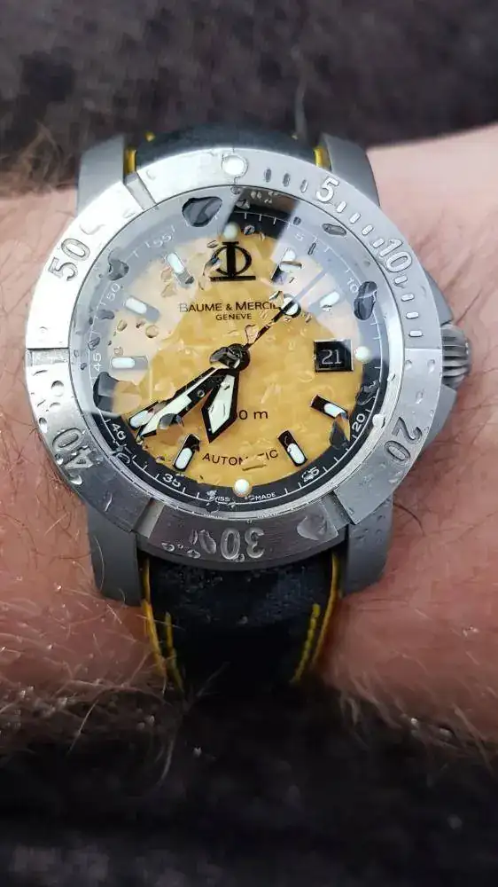 En los peros? Solo 3 atm de WR, que la curva del zafiro y con segun que brillos dificulta ligeramente la visión de la hora, y que para mi muñecona se ve algo pequeño 32x43 y no se aprecia en toda su magnitud