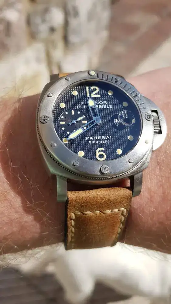 Mi Panerai, el que más me gustaba, nada nuevo que decir. Su titanio como envejecido con pátina, los indices de tritio, los "clavos de Paris", sus 44mm y muchas correas. 100% ADN Panerai