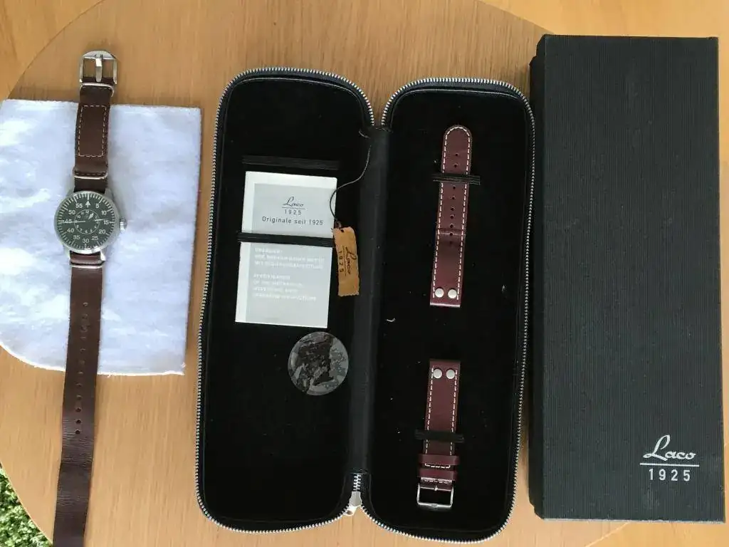 El reloj viene completo de todo, si estas buscando un Laco auto nuevo y solo compras de segunda mano si el reloj esta perfecto, ni te lo pienses. El mejor precio que se saca para este reloj hoy día en mercantes o en la red son 325 euros. Lo dejo en 210 euros puesto en casita.