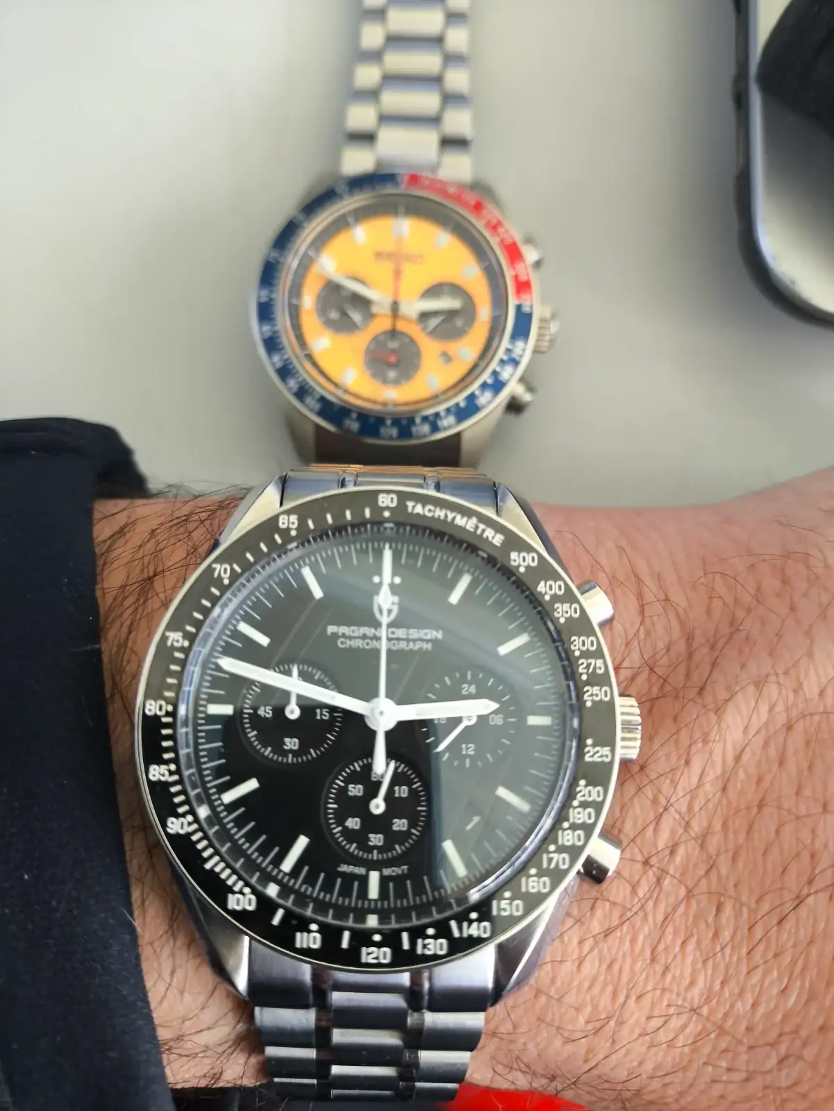 Buenas tardes, primero os pongo en situación, ayer por la tarde un compañero y gran amigo con el que comparto la pasión por los relojes, me comentó que había comprado un Pagani Design y que necesitaba ajustarlo a la muñeca y que no daba con los destornilladores que tenía en casa, como calzamos el mismo tamaño de muñeca, le dije tráemelo y te lo ajusto en un momento, el problema es cuando ha venido con el reloj, es el mísmo modelo del que hace tiempo me deshice de él, al final como muchos sabéis estoy en modo reducción, pero al verlo se me ha removido un nido de mariposas en el estómago, cuando lo vendí dije hay que dejarlo ir tengo demasiados y ya vendrán otros mejores y algún día el original, uno de mis griales, 3 años después de dejarlo ir, veo más difícil algún día poder alcanzar el original y jolín este me ha causado una gran CRI existencial y me he lanzado a mirar AE y encima está a buen precio, que haríais en mi lugar le daríais a comprar otro igual o lo dejarías pasar??? Os dejo fotos del protagonista Ver el archivos adjunto 3446190Ver el archivos adjunto 3446191Ver el archivos adjunto 3446192Ver el archivos adjunto 3446195la verdad es que es bonito a rabiar y iba a muy buen ritmo de reducción porque aunque aun tengo 43 han salido 20 el último año.... Que haríais en mi lugar? Gracias por vuestros consejos de antemano