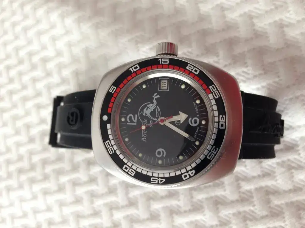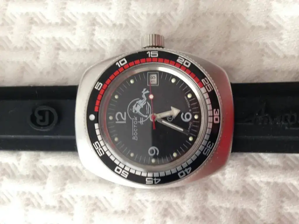 El bezel es acero estilo rally con punto de lumen a las 12 y bidireccional del conocido Boris, la tapa trasera es de cristal mineral con muy leve tono azul y resistencia 200metros del diseñador One Second Closer al igual que el brazalete de silicona suave y bucle estilo panerai ambas piezas tanto tapa trasera como brazalete están firmados por el fabricante anterior y logotizado con el nombre de Vostok para mayor exclusividad cabe aclarar que la suma de las piezas por separado mas el reloj suman mas que lo que pido.
