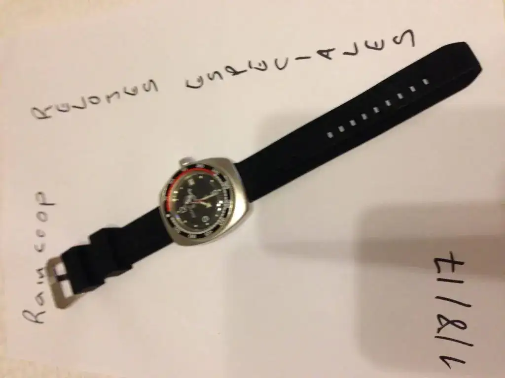 El reloj con esfera clásica de buzo en negro fue comprado a Meranom nuevo ( con el fin de "tunearlo" ) luego de adquirir a diferentes proveedores de piezas para esta clase de reloj se monto todo con mimo.