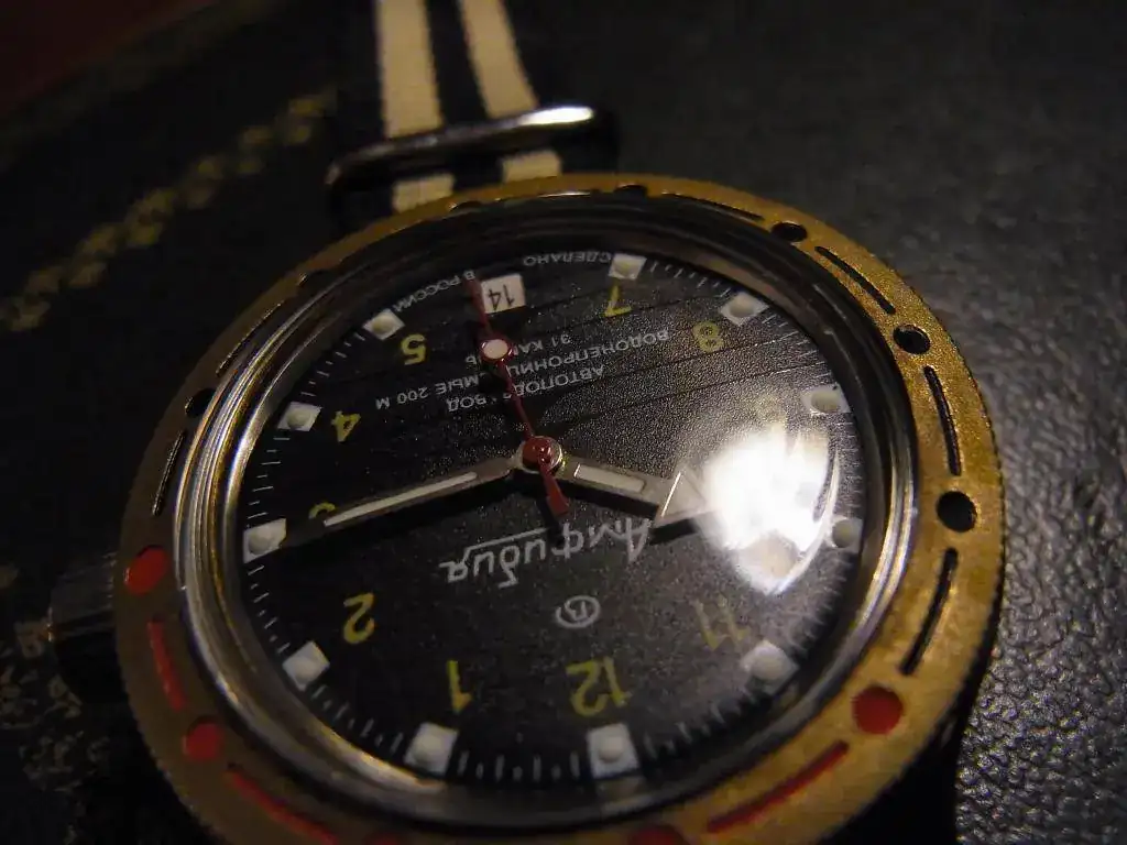 -- Calibre Vostok 2416 B,automático con recarga también a cuerda.Reserva de marcha:28 horas.Desviación de esta unidad: +15 seg./24 horas.