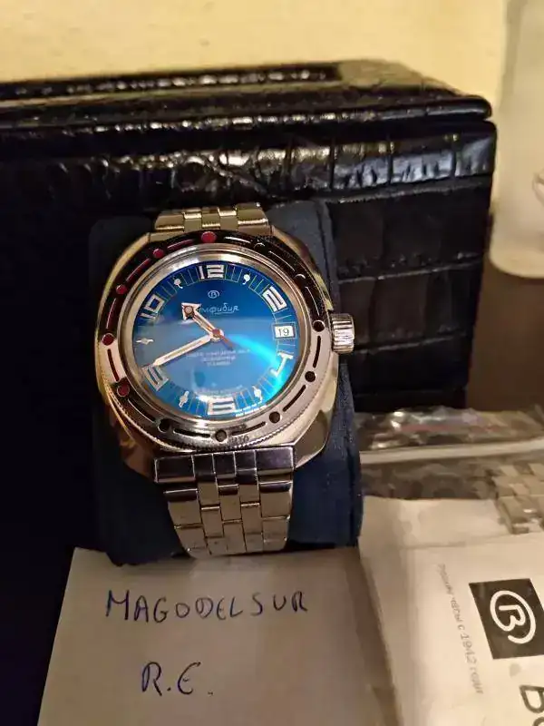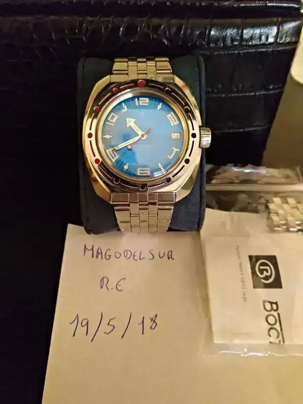 Hola compañeros, saco a la venta un Vostok Amphibia con caja 710 ministry en un color azul muy bonito, el reloj tiene documentación y eslabones sobrantes, no tengo caja, tiene un leve roce en el plexi que apenas se intuye pero ahí está.