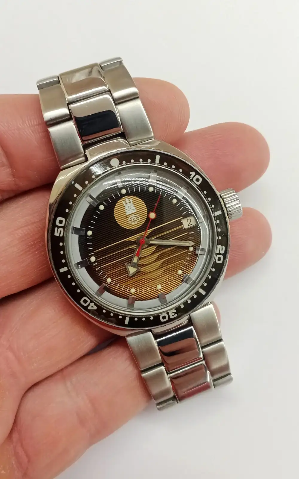 El brazalete es uno sólido de la serie Neptune de Vostok. De 21-18 mm.