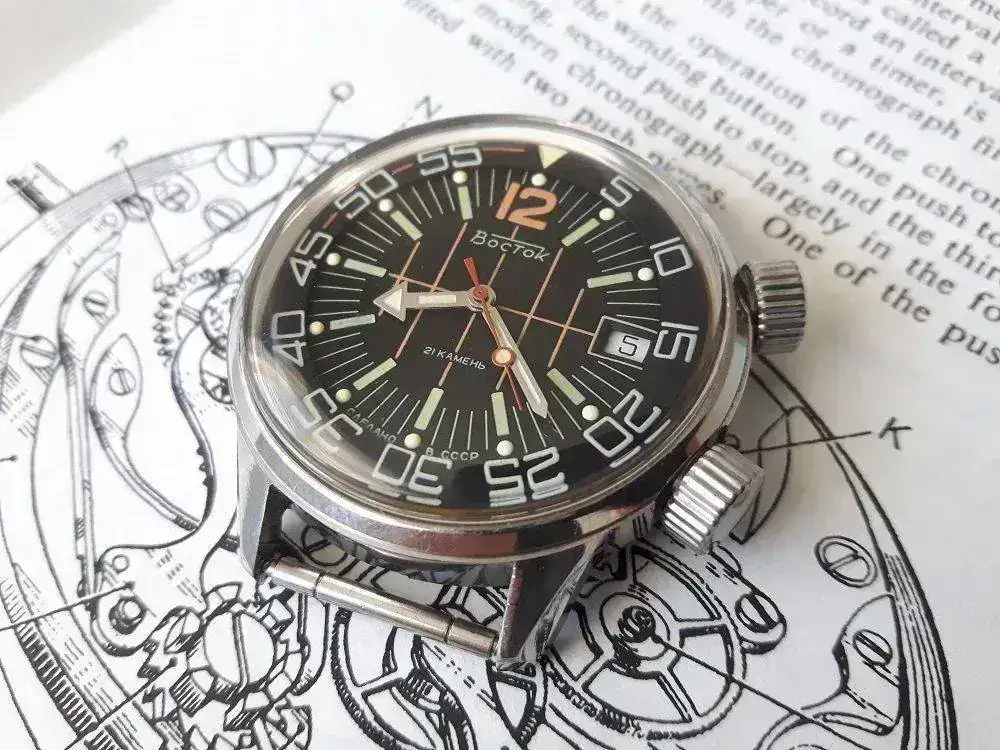 Este es el Vostok Compressor original de mediados/finales de los años 80. No fue producido en grande serie (poco más que algunas docenas de prototipos) y no se cree que existan mas que 50 (algunos expertos adelantan que mucho menos que eso) y es considerado un "Grial" por muchos.