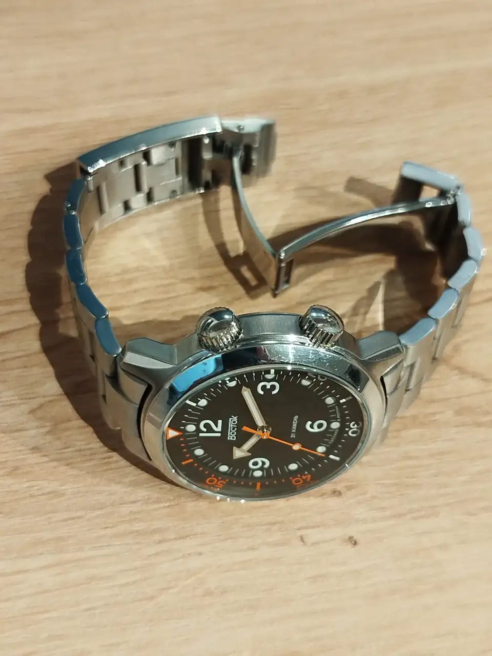 El reloj está en perfecte estado tanto estetico como de funcionamiento. No tiene toques, ni rasguños destacables, solo las tipicas marquitas del uso, que ha sido muy moderador.