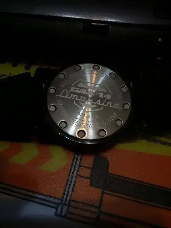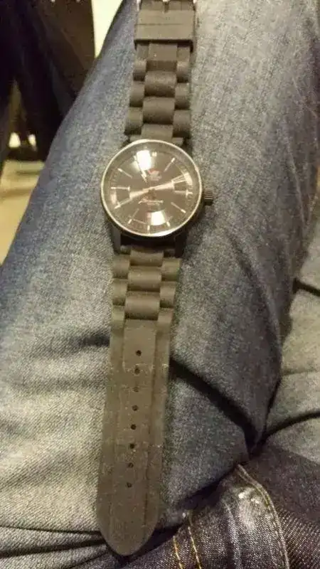 es un reloj de 45mm de caja y está perfecto y casi sin usar ( solo tiene una marca en una asa al ser negro pavonado se disimula con un solo poco retoque es automatico y lleva tritio en agujas y horas