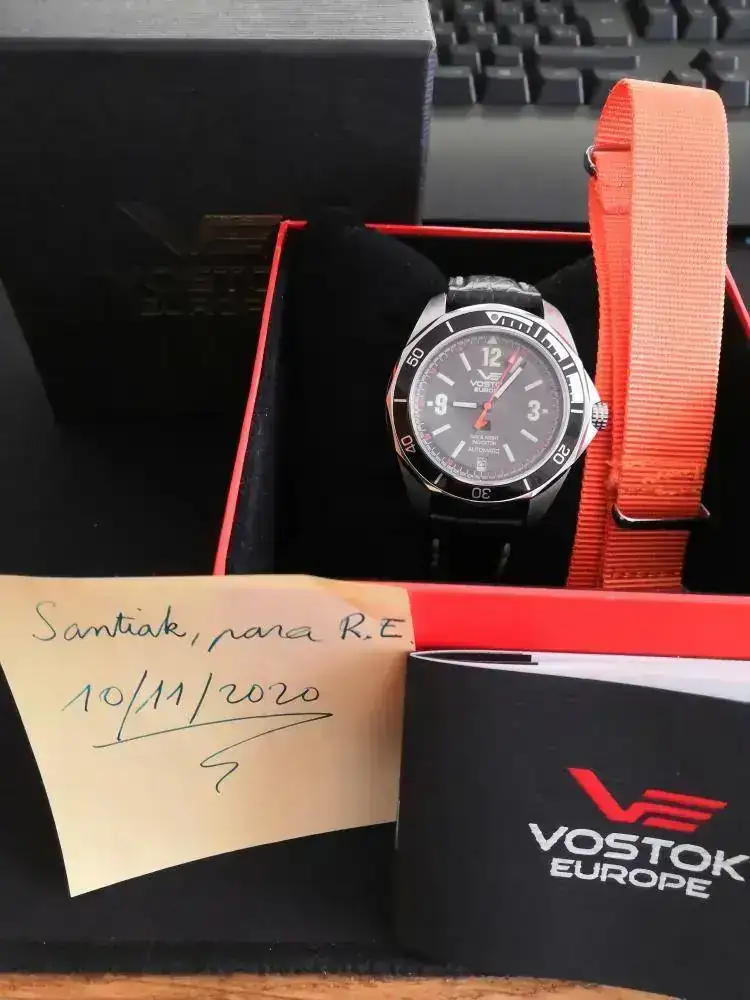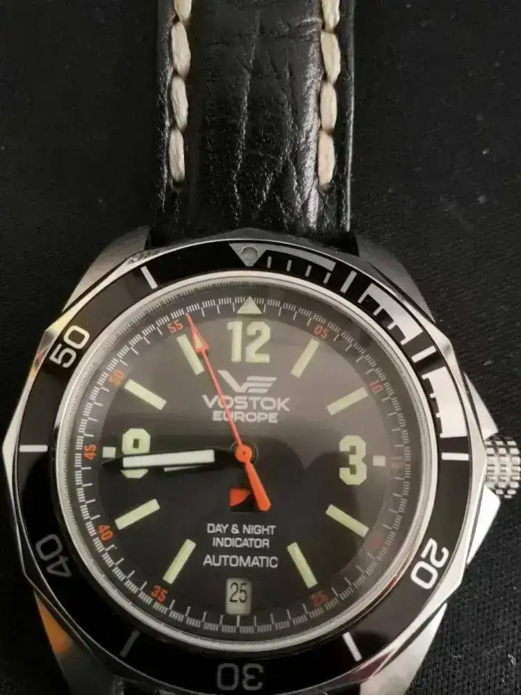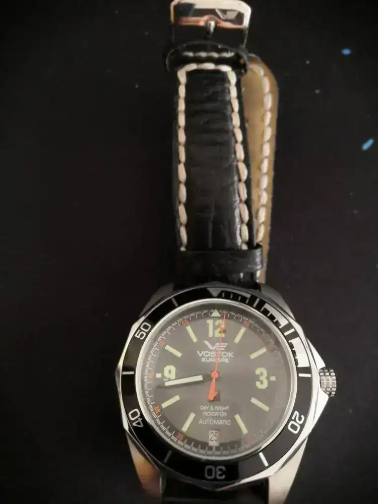 Buenas días, foreros. Pongo en venta mi VOSTOK EUROPE SUBMARINE K3. Tiene cristal de esfera y fondo visto de cristal mineral, bisel unidireccional de 60 clics, sumergible hasta 100 m, y complicación consistente en indicador dia/noche de 2 colores (negro y naranja).Correa de piel usada pero en buen estado más nato naranja. Se incluye caja original, y manual. En esta ocasión, por favor, no acepto cambios.