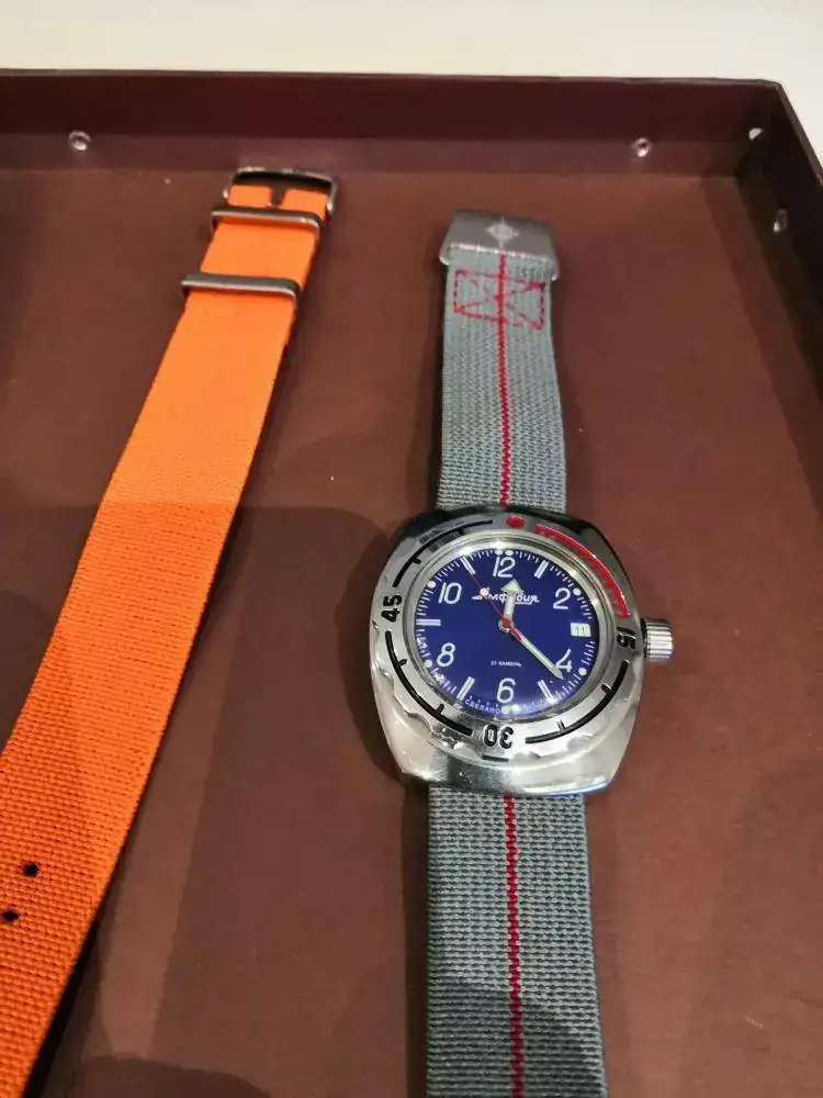 Podrias poner una foto de la correa al lado de un reloj para ver la diferencia de tonalidad entre una caja gris y el gris de la correa?