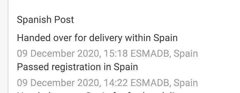 Muchas gracias, este pantallazo es de la de 17track pero traducido.Cada página de seguimiento varía ligeramente la forma de comunicarlo.