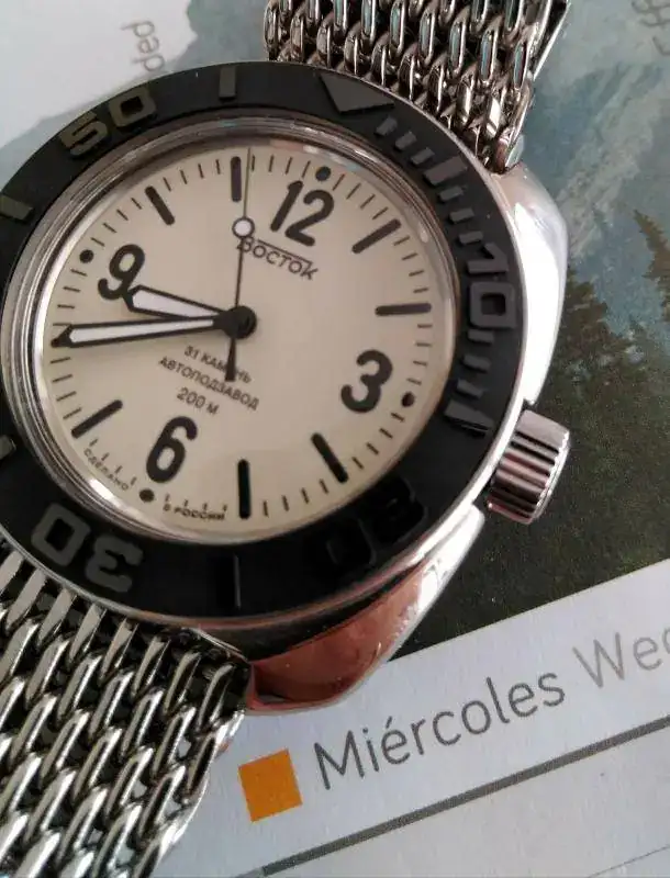 Efectivamente, los diales radioactivos de los actuales Komandirskie K-34 ya se asemejan a esa tonalidad crema.