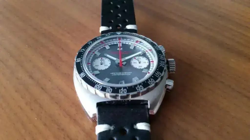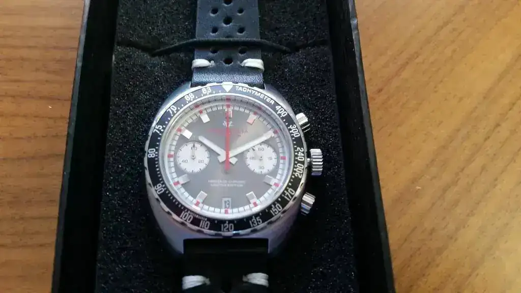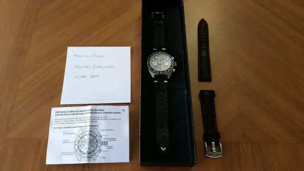 pongo a la venta este exclusivo reloj (sólo se hicieron 150 piezas y no se van ha hacer más), el Vratislavia Conceptum Heritage Chrono Series 3. El motivo es que ha de salir para que entren otros. La maquinaria es una mecaquartz, lo que quiere decir que la trotadora del crono se mueve en movimiento continuo, como un reloj automático.